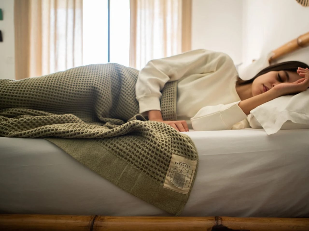 Casamera’s One Blanket, inspired by Scandinavian design, redefines coziness with an innovative open waffle-weave fabric that is breathable, thermoregulating, and soft, providing year-round comfort. Lightweight yet perfectly weighted, it delivers the familiar feeling of security without overheating and can be easily rolled or folded for travel. Whether sleeping in bed or relaxing on the couch, it adapts seamlessly to your needs.