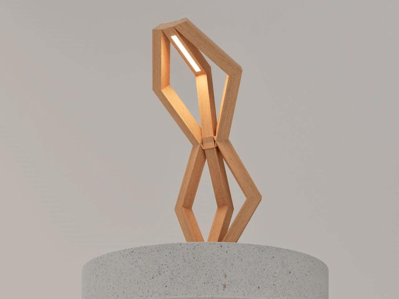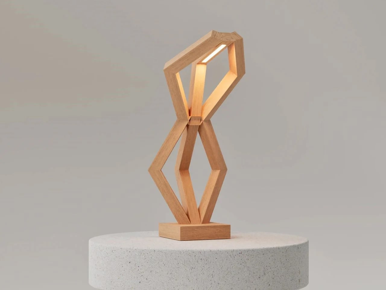 Crafted from warm-toned natural wood, BERSERK emphasizes material honesty through invisible joinery that highlights the grain and preserves the purity of form. A seamless LED light source rests atop the structure, casting a soft, ambient glow that enhances interiors without overpowering them.