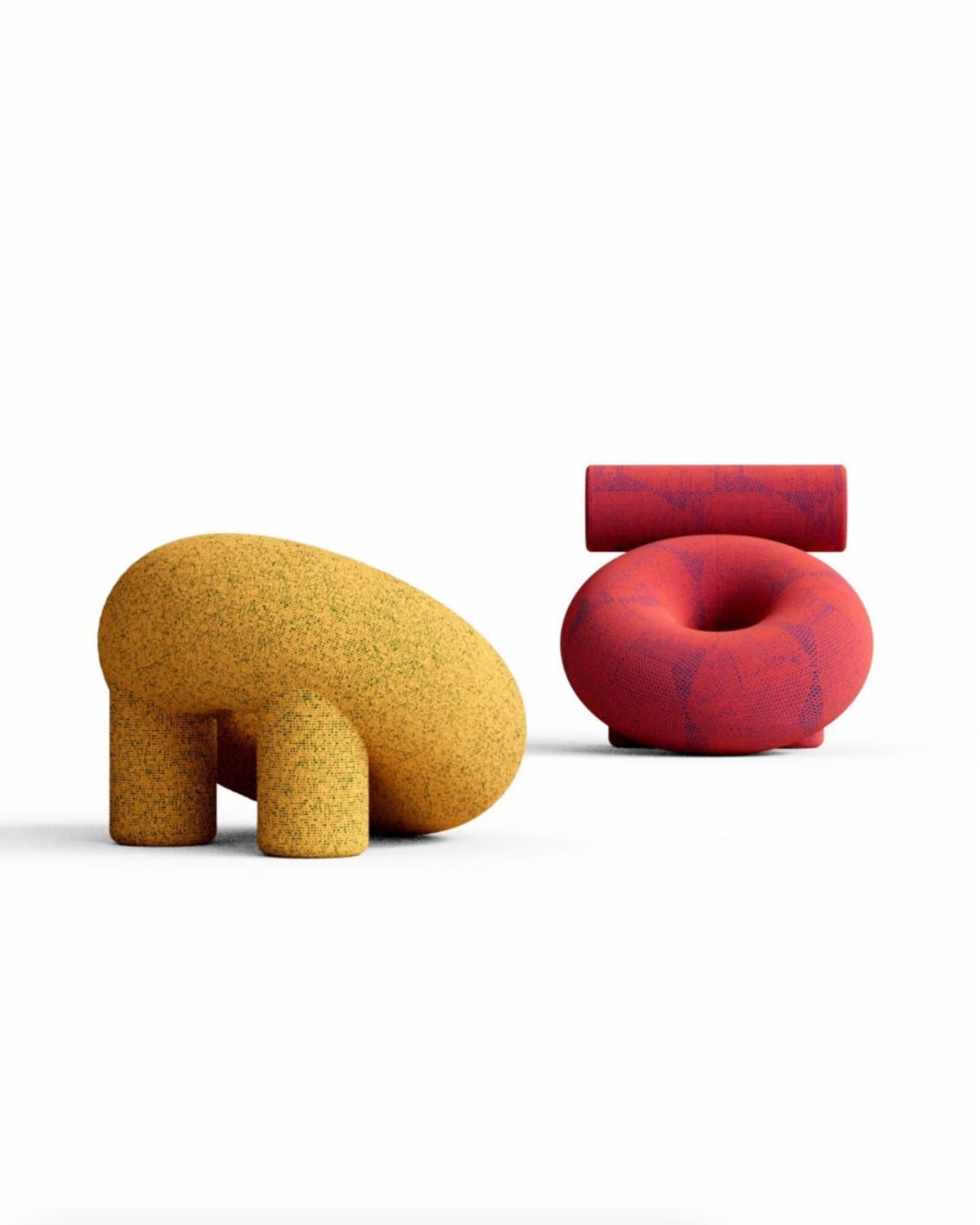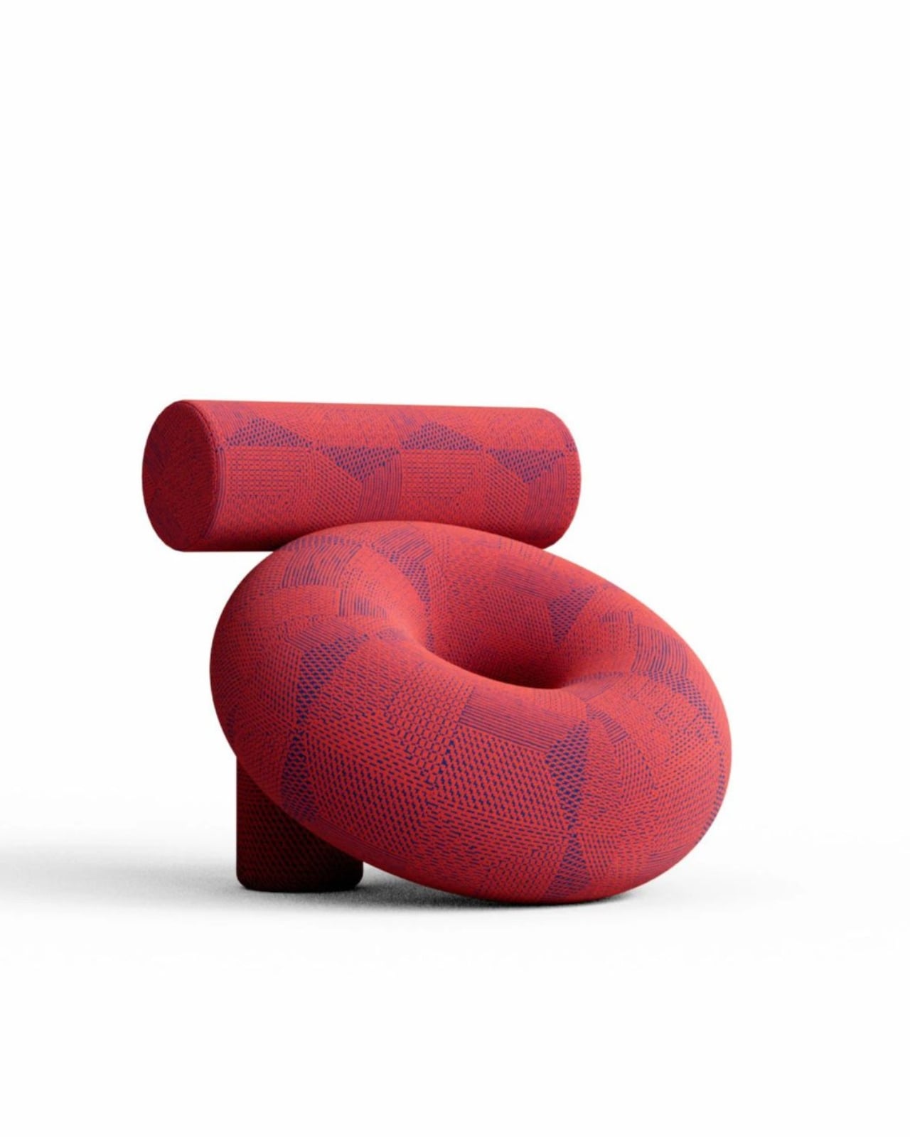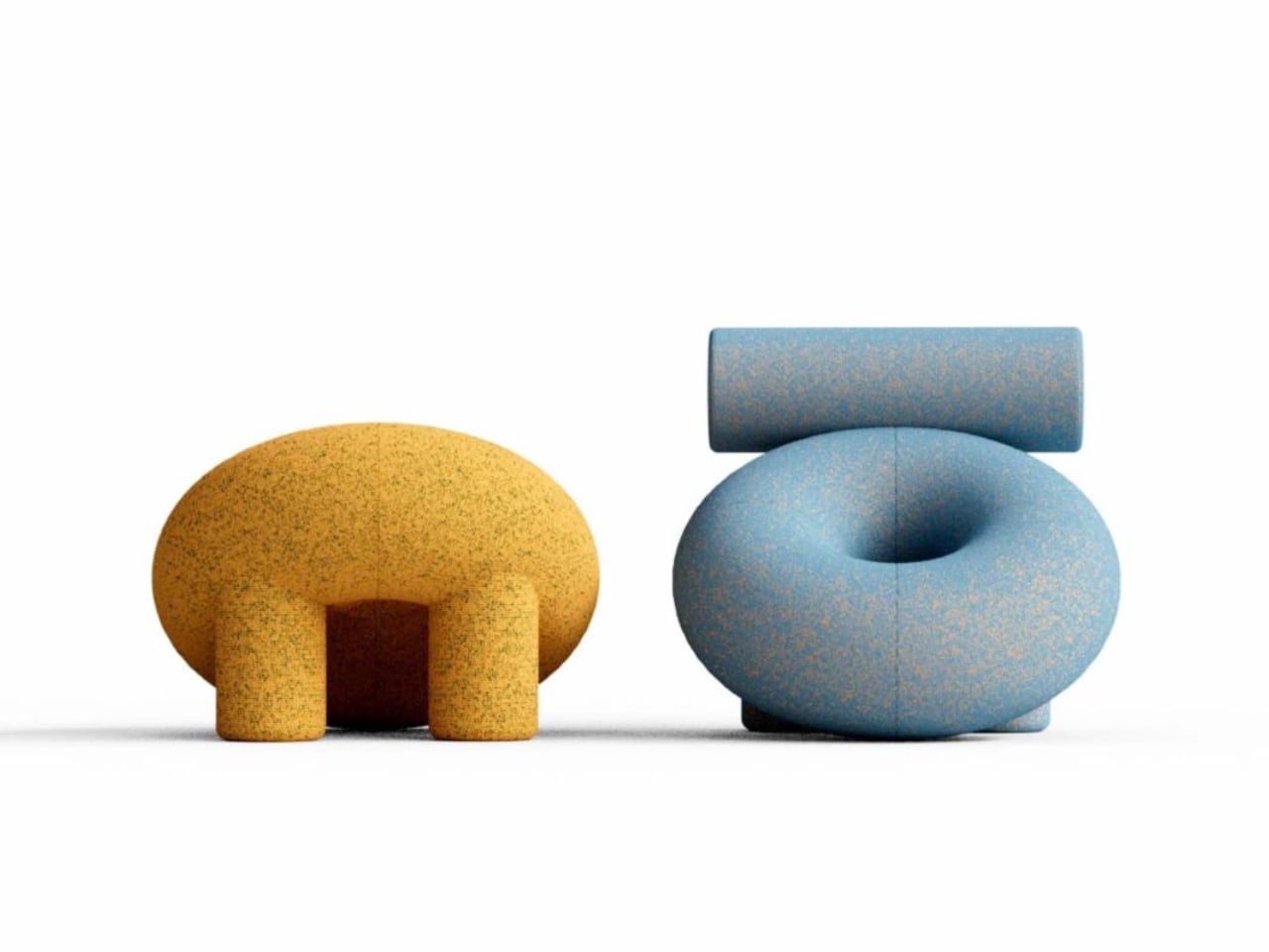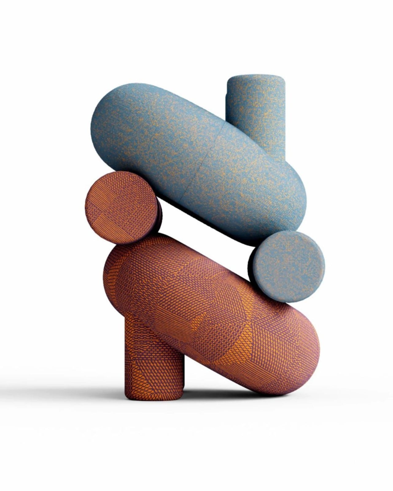 The name is a clue. Bublyk is the Ukrainian word for a ring-shaped bread, essentially a bagel’s Eastern European cousin, and once you know that, you can’t unsee it. The torus geometry at the heart of the design, that classic ring form, is suddenly the most obvious and delightful thing in the room. But Kovalskyi doesn’t stop at one shape. He stacks cylindrical volumes alongside the torus, letting them collide and nestle against each other until the whole thing reads less like furniture and more like a soft, living sculpture that decided to sit down.