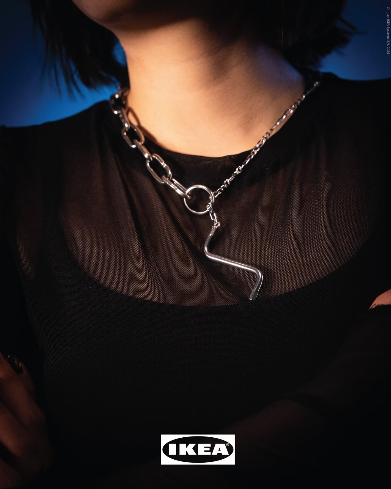 IKEA Singapore, working with creative agency The Secret Little Agency, has reimagined the brand’s iconic flat-pack tool as a piece of wearable jewelry. The ALLËNKI, as it’s been named (and yes, the umlaut is doing a lot of heavy lifting there), is the humble allen key redesigned to hang from a chain as a pendant. It leans hard into an industrial aesthetic, the kind that lives somewhere between a Depop vintage find and something a contemporary menswear designer would slip into a lookbook without explanation. Raw, utilitarian, and surprisingly chic. I did not expect to want a hex wrench around my neck. And yet, here we are.