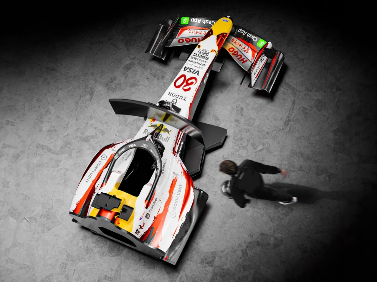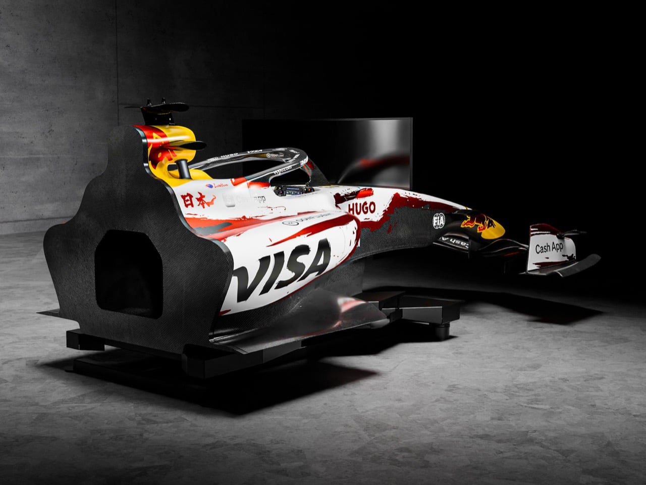 The livery itself deserves more than a passing description. Aoyagi’s calligraphy does something that most F1 livery design cannot, which is carry genuine visual weight at both highway speed and standing still. The white base gives the red and silver calligraphic strokes room to breathe, and the result reads differently depending on your distance from the car. At speed through Suzuka’s Esses, the Cherry Edition reads as a bold, high-contrast graphic. Parked in the Shibuya streets during Tokyo Drift, it operated as something closer to a gallery installation on wheels. That duality, between kinetic graphic and considered artwork, is exactly what makes the livery a strong candidate for the simulator treatment, because you actually want to sit inside it and study the surfaces around you.