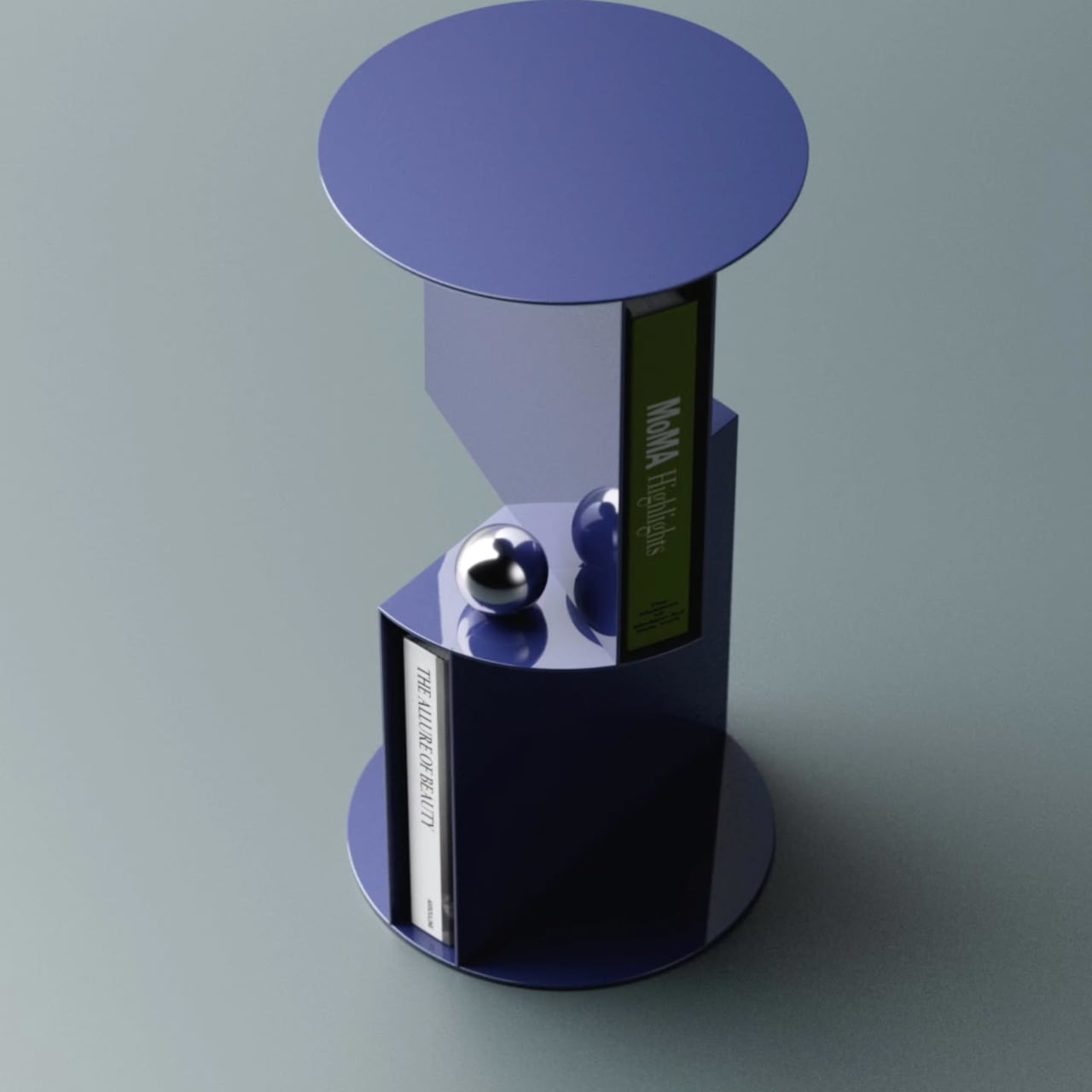 Designer Deniz Aktay has been doing exactly that kind of rethinking through his designs. His latest concept, the Torque High Side Table, takes the structural question seriously, proposing a pedestal that isn’t really a pedestal at all. The table’s support comes entirely from two metal storage units that carry the weight of the design, both literally and visually, stacked and rotated against each other.