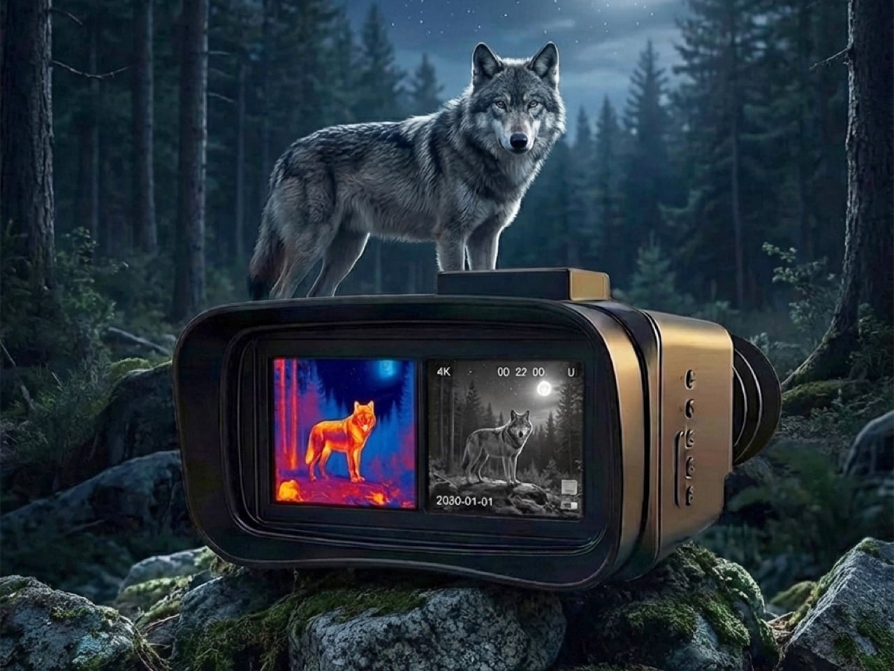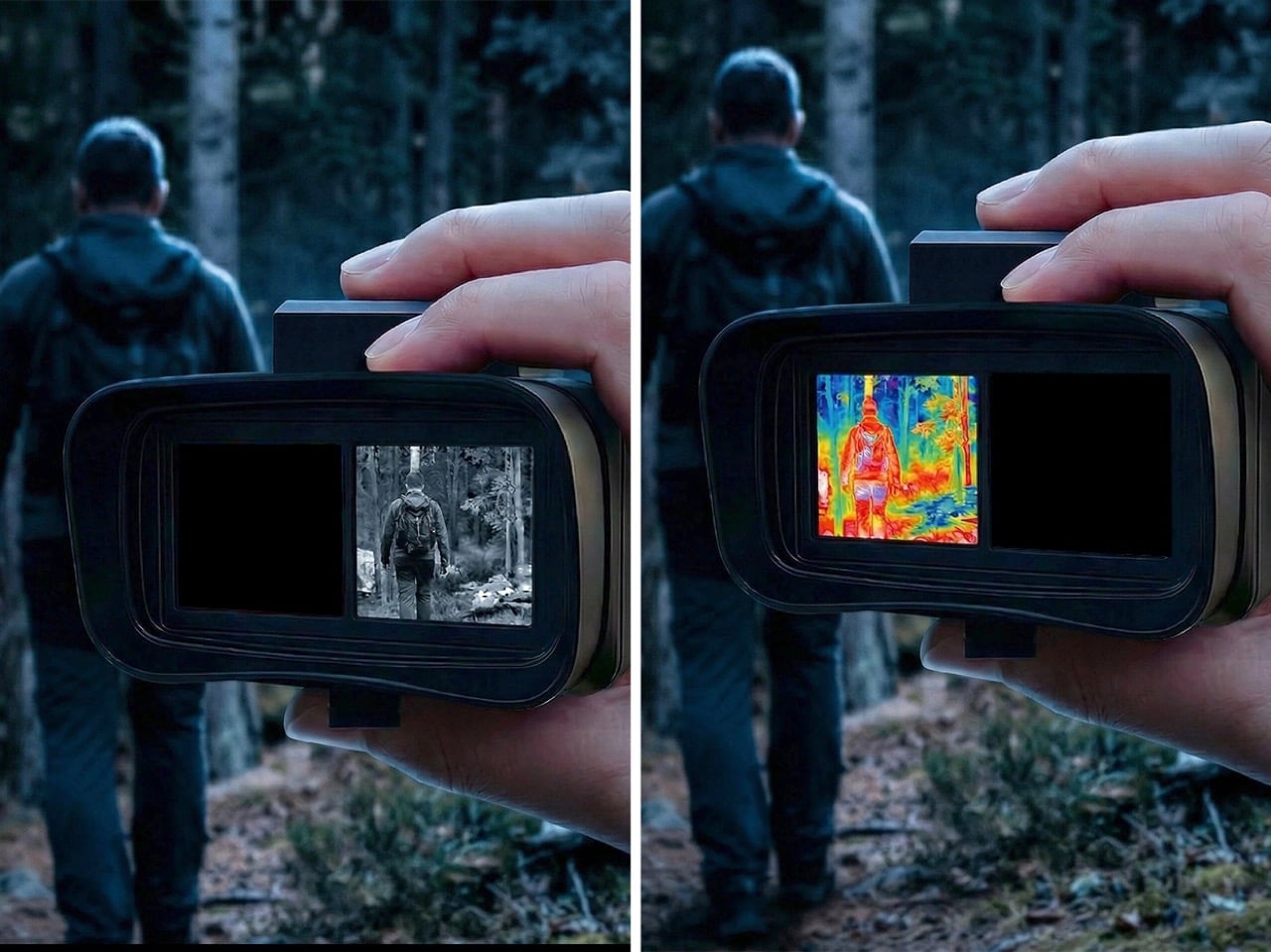 The core innovation lives in what SpectraEyes calls the Real-Time Dual-Screen Synchronization System. Rather than attempting to merge thermal and night vision into a single confused image, the optics route each feed to its own dedicated 1280×720 LCD screen inside the binocular housing. The left screen receives data from a 12-micron thermal sensor running at 60Hz with sub-25mk NETD sensitivity, which translates to the ability to detect temperature differences smaller than 0.025 degrees Celsius. That level of thermal resolution separates a warm body from ambient foliage even when both are nearly the same temperature. The independence of the two displays means your brain processes depth, movement, and context from the night vision channel while simultaneously tracking heat signatures on the thermal side, creating a layered awareness that single-feed systems simply cannot replicate.