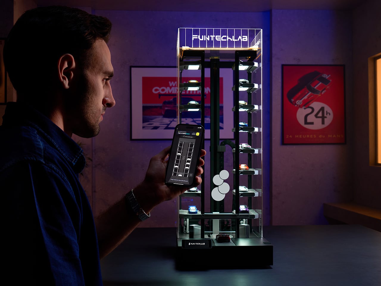 The product doesn’t demand app dependency to function, which immediately separates it from the category of smart gadgets that become expensive paperweights when the server dies or the phone isn’t nearby. A 2.79-inch display and a physical rotary knob on the front provide full garage control offline. You can scroll through trays, select a parking spot, trigger retrieval, and adjust lighting brightness without ever opening the app. That offline-first design suggests Fun-Tech-Lab has spent time around collectors who value reliability over novelty, and it shows in the execution. The app exists to enhance the experience, not hold it hostage.