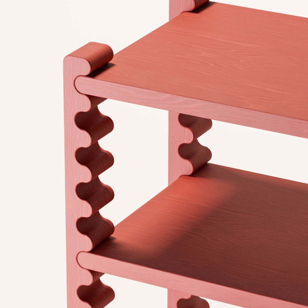 The logic here is pretty satisfying. Instead of adding a separate tracking or pinning system, Dilema embedded the mechanism directly into the form. The rippled surface of each support creates natural stopping points along the length of the frame, so positioning a shelf is as intuitive as sliding it into place. There’s nothing to install, nothing to adjust, and nothing to lose at the back of a drawer.
