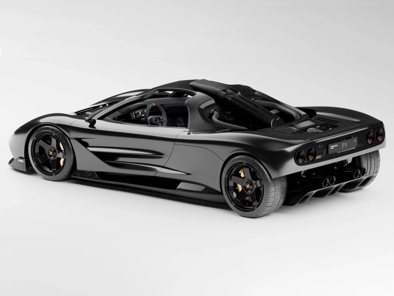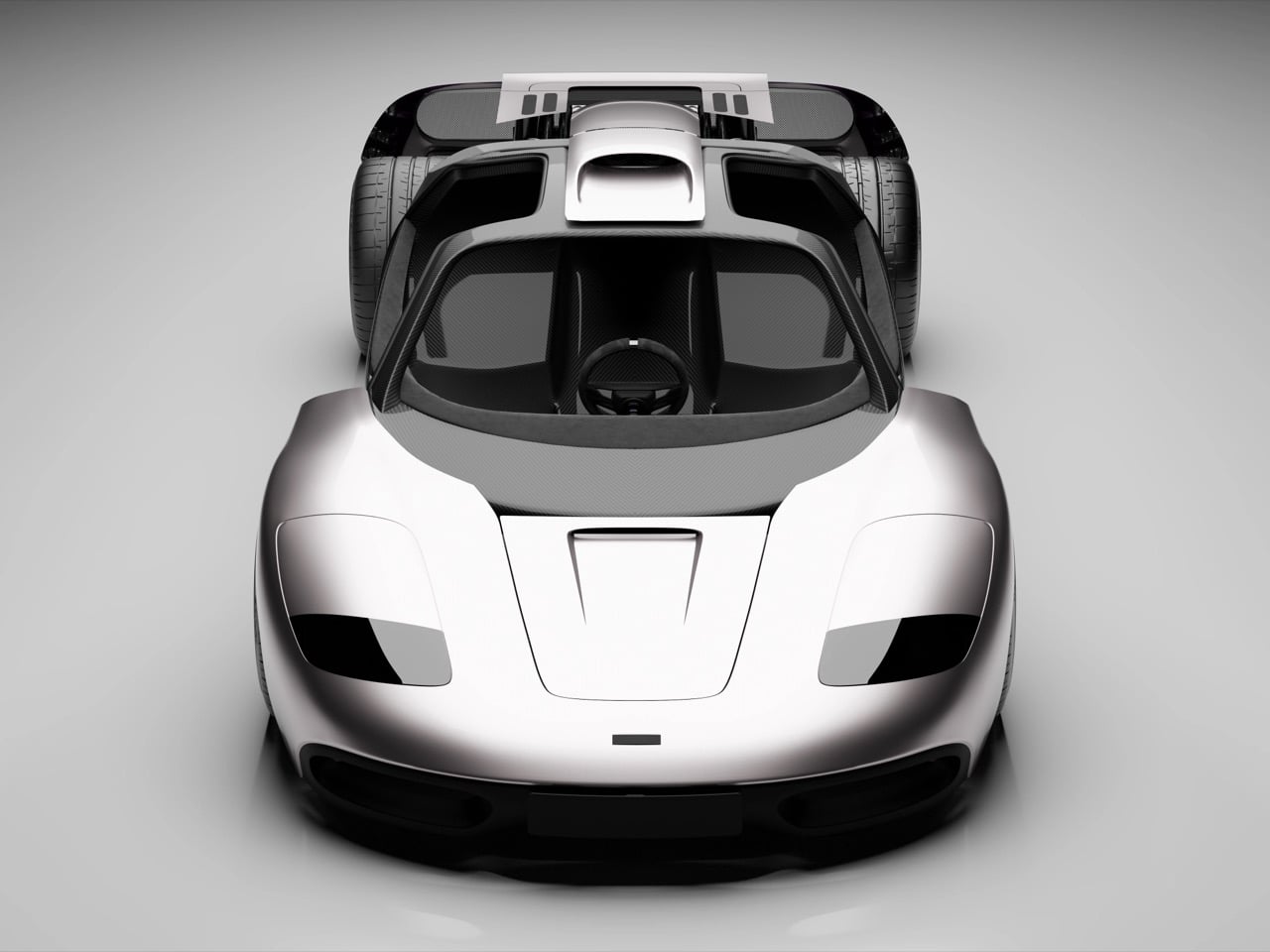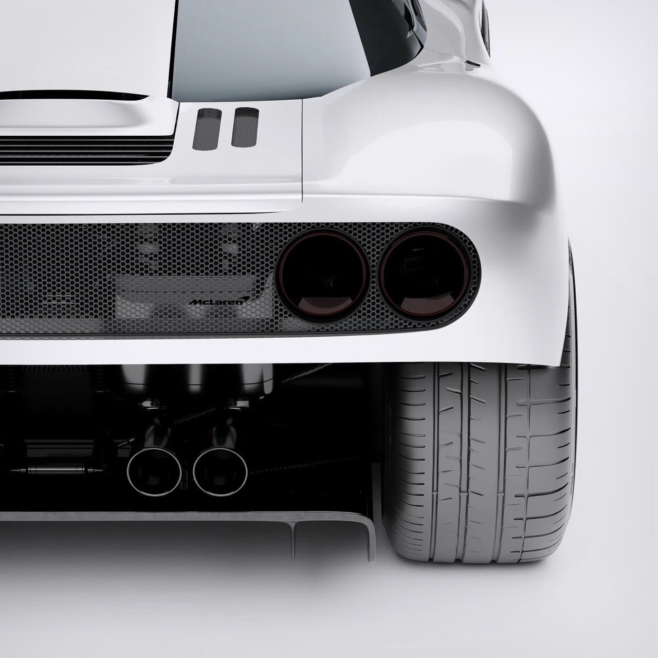 The reimagined F1 maintains the sacred proportions of the original while evolving its surface language into something more contemporary. The long hood remains, a visual reminder that this car houses a naturally aspirated engine positioned just behind the driver. The greenhouse retains the cab-forward stance that made the original F1 look like it was moving even when parked. The rear haunches are muscular without being cartoonish, and the whole package reads as a single, cohesive form rather than an assembly of disparate parts. Andersson’s renders, shot in both glossy white and menacing dark gray, show a car that could plausibly emerge from McLaren’s design studio today if the brand decided to revisit its analog past.