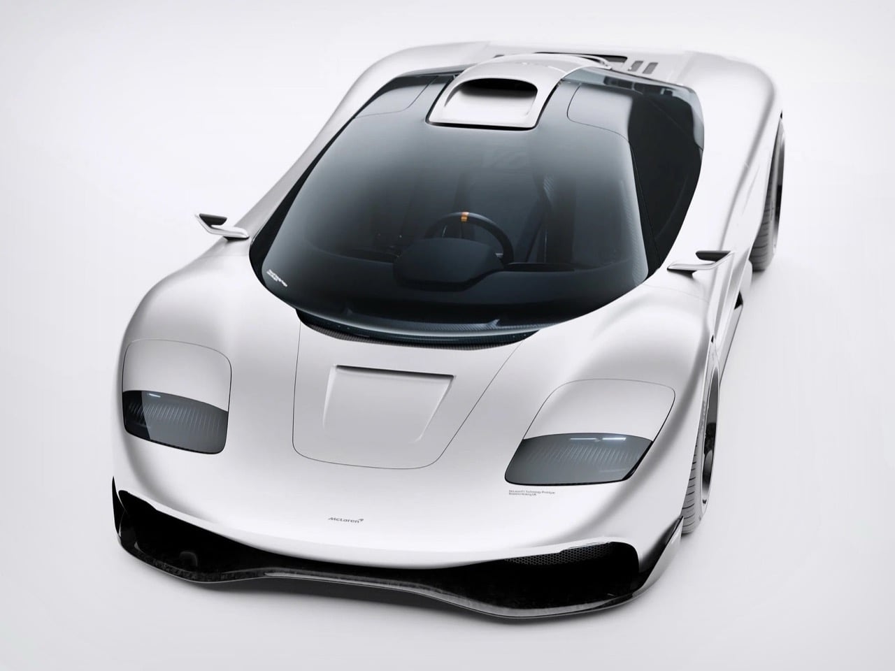The exterior form language walks a careful line between heritage and modernity. Andersson retained the original F1’s defining visual cues: the teardrop cabin, the prominent side air intakes, the dihedral doors (he kept the distinctive upward-swinging doors rather than the gullwing configuration). The headlights are recessed horizontal units that recall the original’s pop-up lights without literally reproducing them. The front splitter and rear diffuser are far more aggressive than anything Gordon Murray would have approved in 1993, a reflection of three decades of aerodynamic development in motorsport. The rear wing deploys from a recess in the engine cover, maintaining clean lines when retracted but providing genuine downforce when needed.