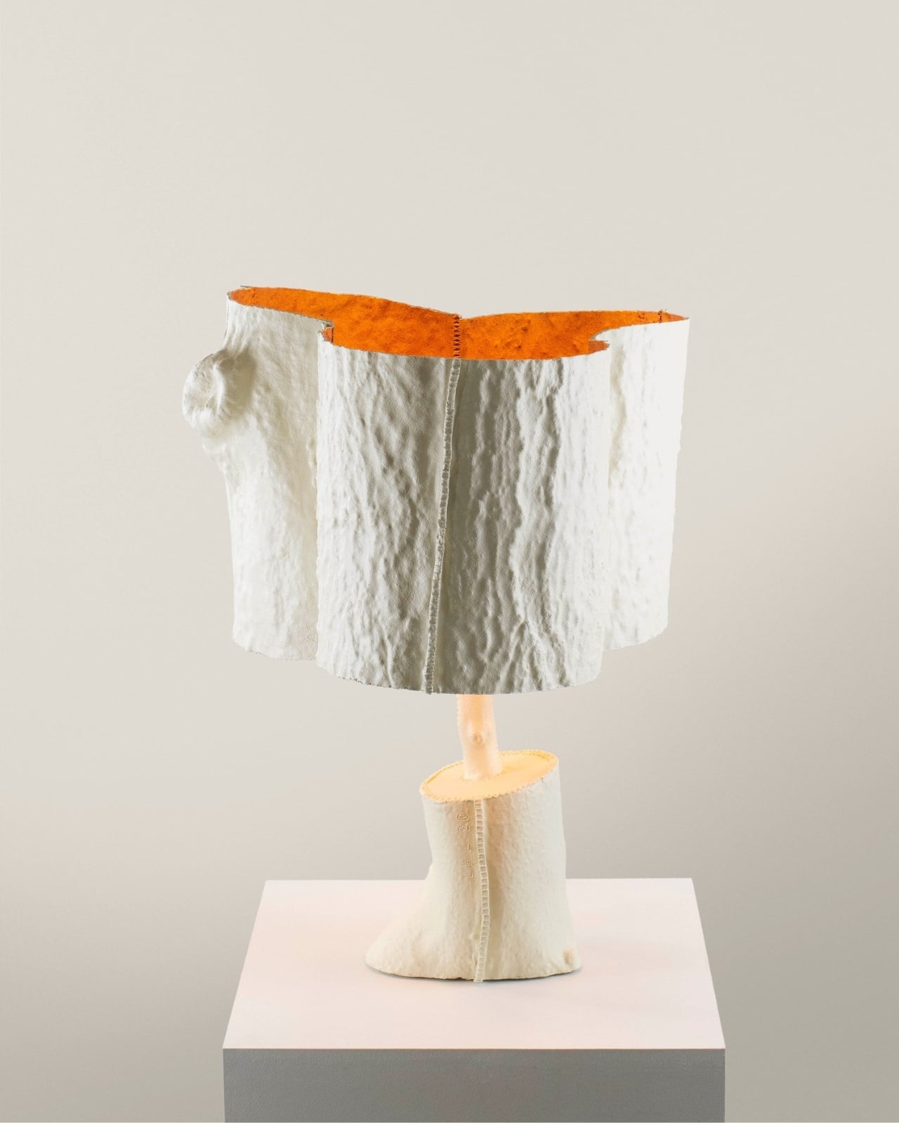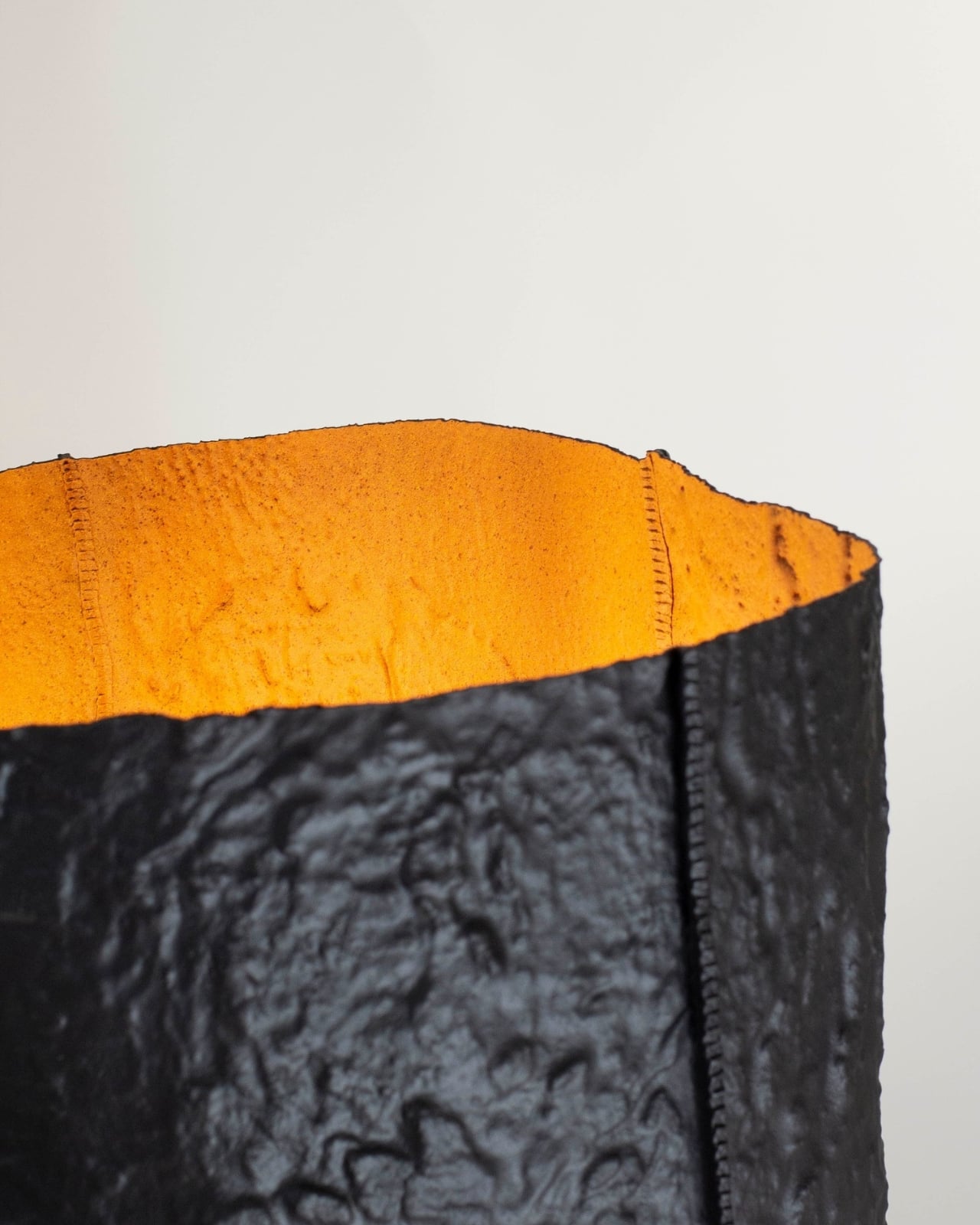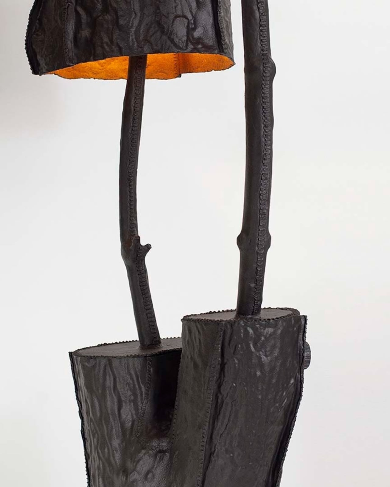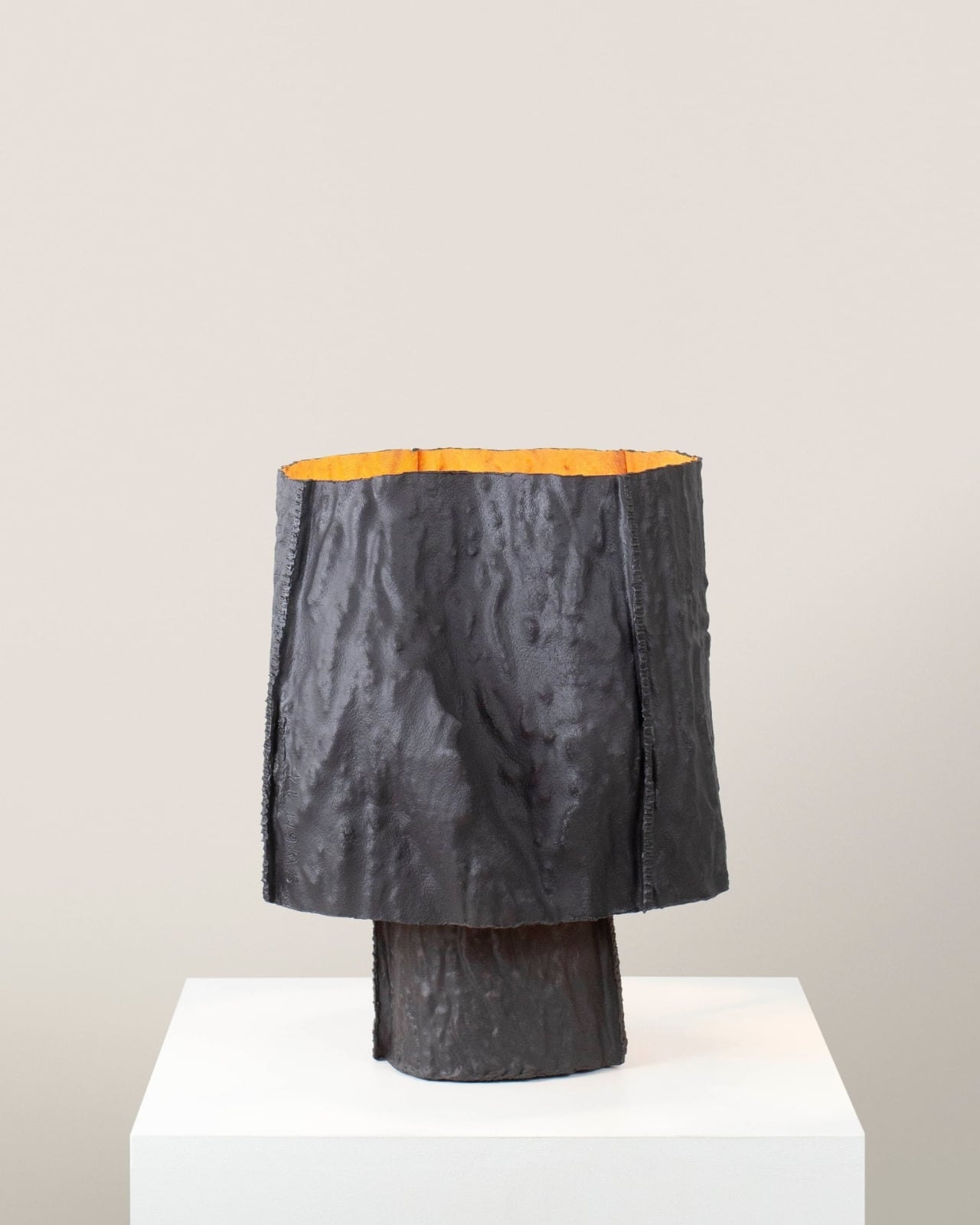 That personal starting point matters more than it might seem at first. A lot of sustainable design today leans heavily on the idea of nature while keeping a safe aesthetic distance from it. Fraser collapsed that distance entirely. The irregular textures across each piece, the way no two lamps in the series look exactly alike, these aren’t stylistic choices made in a studio. They’re what happens when you let nature do the actual drafting.