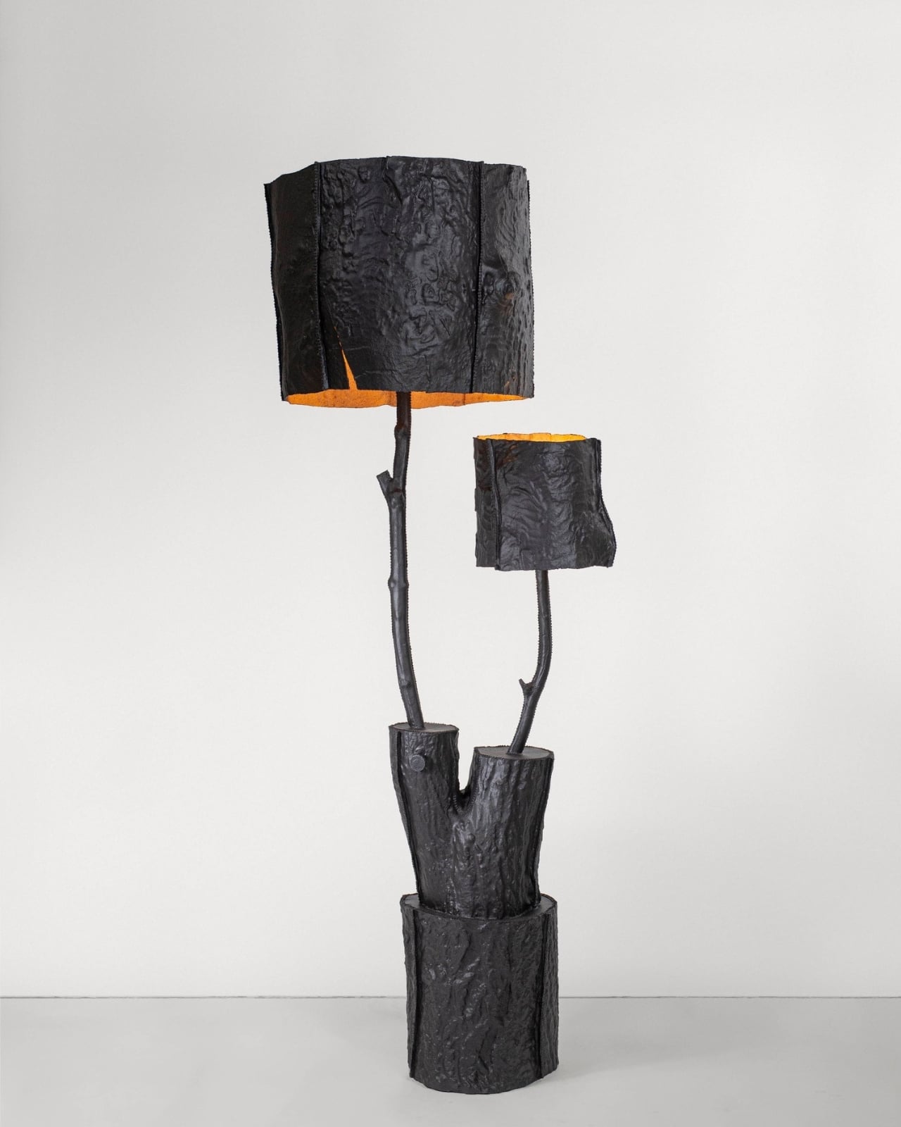 Most lamps get designed around a concept. MJ Fraser designed his around a memory. His Trees From The Garden collection started not with a mood board or a material swatch, but with the actual trees that grew in his childhood garden. He pressed the bark and branches directly into moulds, one section at a time, and the result is a series of lamps that look like they were pulled straight from the forest floor, still carrying the warmth of something lived in.