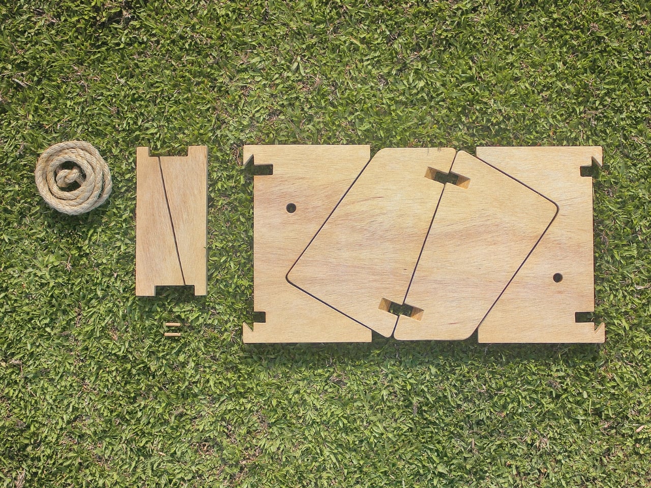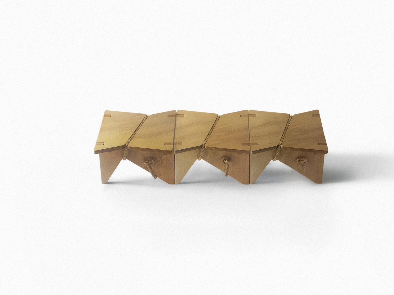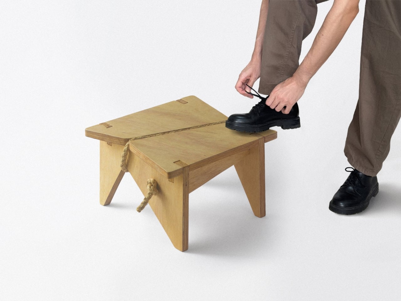 Materially, the piece holds its own. It’s made from marine pine plywood, assembled through a system of interlocking joints that require no screws, bolts, or complicated hardware. What holds it all together is tensioned sisal rope, and this is the detail that makes the whole thing click, visually and structurally. The rope isn’t decorative in the way that so many “natural element” additions can feel forced. It’s actually doing the work, reinforcing the structure while giving the stool a texture that you want to reach out and touch. It makes the design feel honest, which is appropriate given what the piece is trying to say.