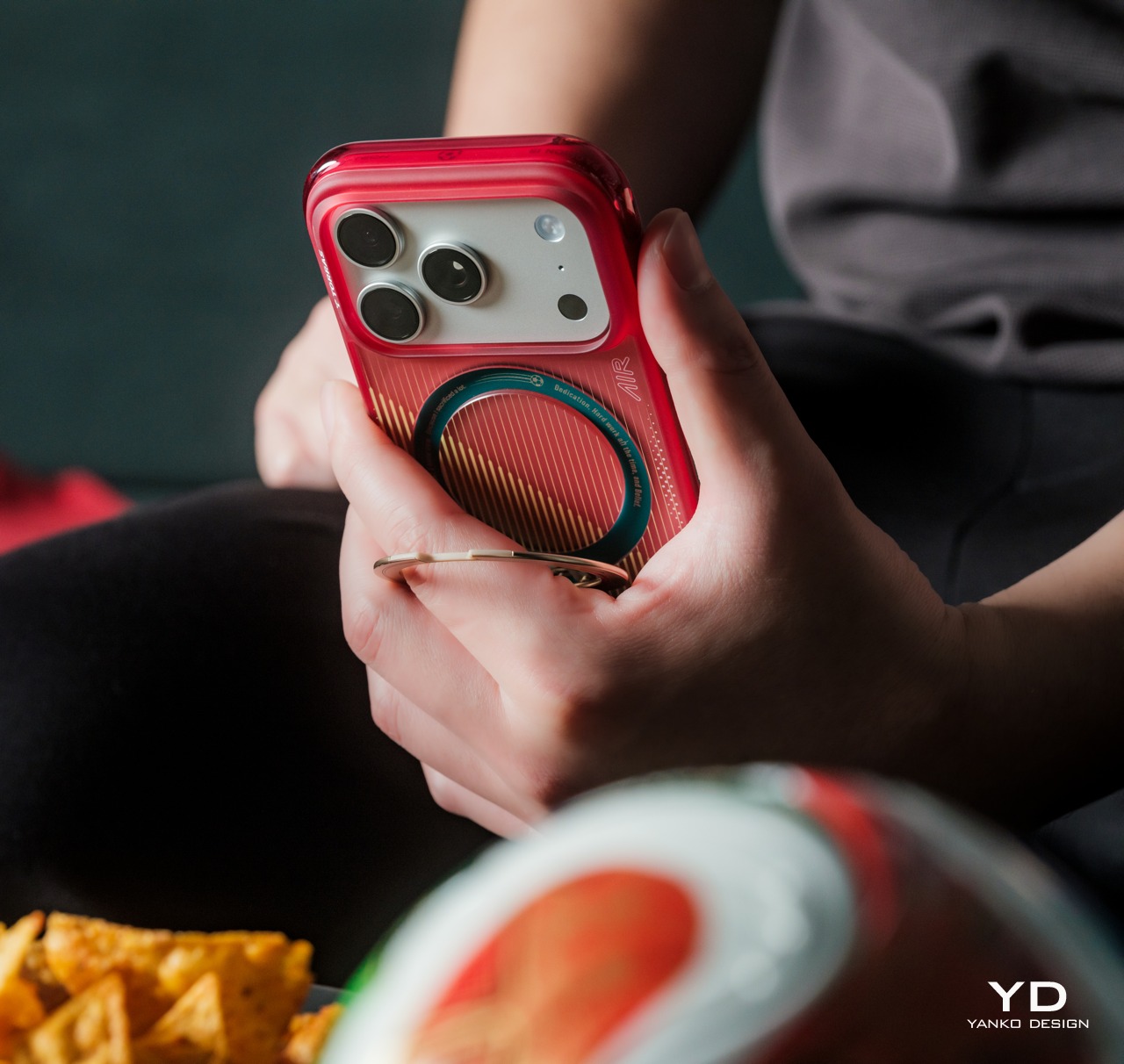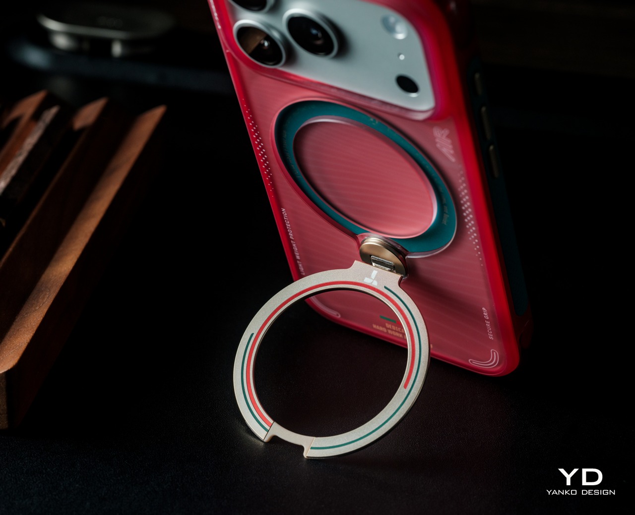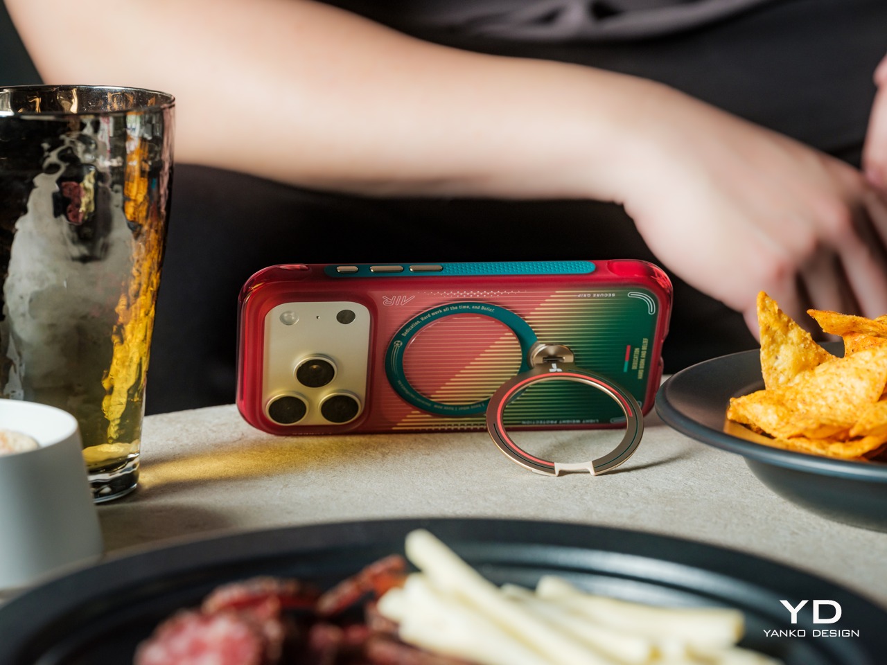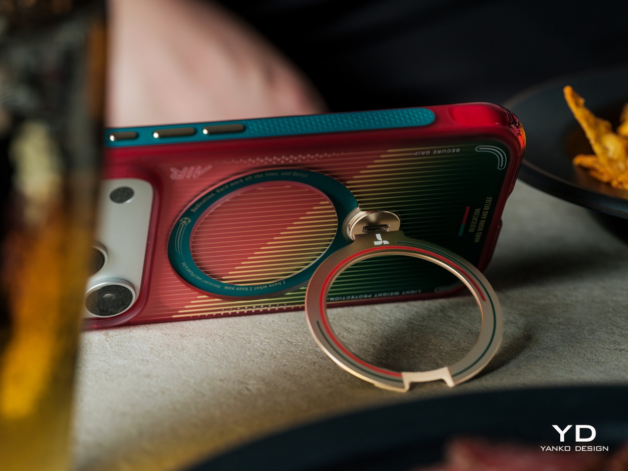 The functional centerpiece of the Ostand series is its rotating magnetic ring stand, which supports 360-degree rotation, 180-degree flipping, and a magnetic hold that snaps securely onto metal surfaces and stays put once set. Propping the iPhone hands-free on a flat surface for a video call, a watch-party stream, or a spontaneous recording takes seconds, and the stand holds whatever angle you choose without needing adjustment.