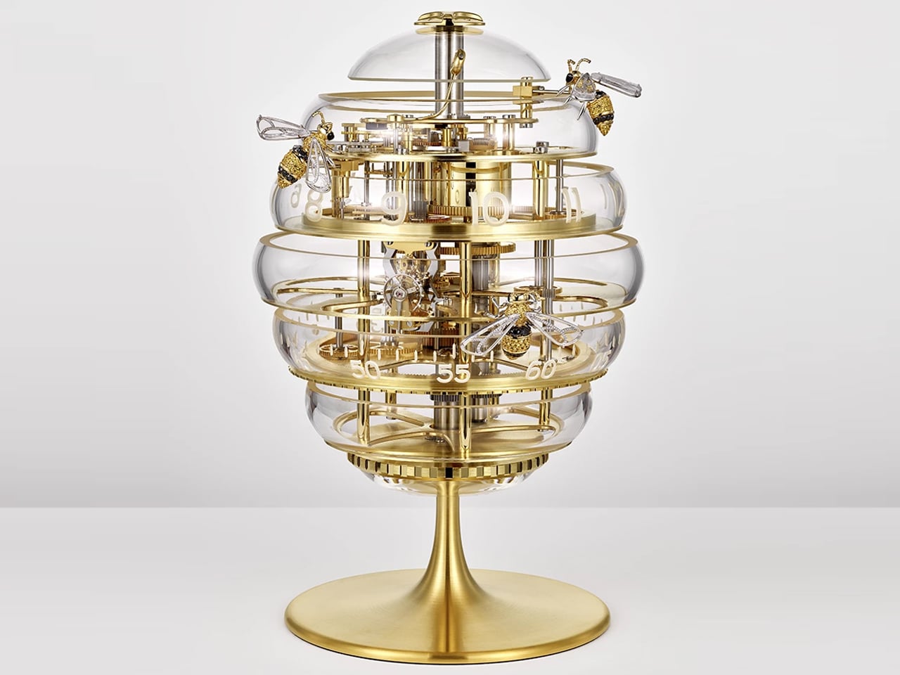 The Beehive Clock is powered by a twin-barreled, hand-wound movement, which can be conveniently wound with a crown located at the bottom. When full-wound, the clock has a power reserve of up to 8 days. With its impressive shape, sophisticated chiming mechanism, and a legacy to live up to, the Chopard Beehive Table Clock is limited to just 10 pieces worldwide. The elusive timepiece will be sold exclusively at Chopard boutiques for an estimated $330,000.