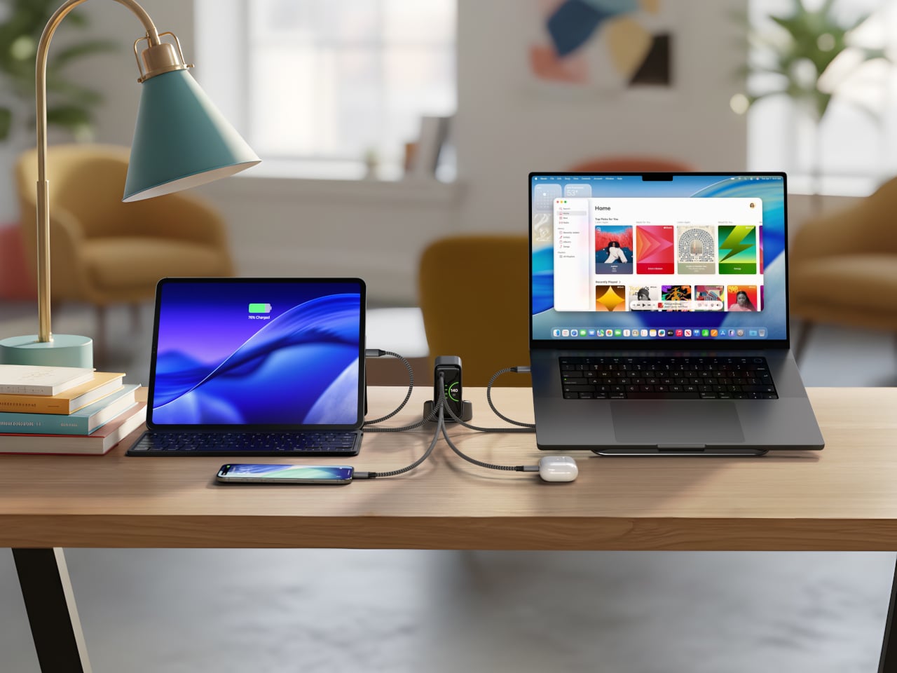 That display earns its keep quickly. With 140W split across four ports, the ChargeView can handle a MacBook Pro, a tablet, a phone, and a set of earbuds all at once. Knowing exactly how much wattage each device is drawing takes the guesswork out of multi-device charging, especially when your priorities shift midday, and you want to confirm that your laptop is still getting the power it needs.