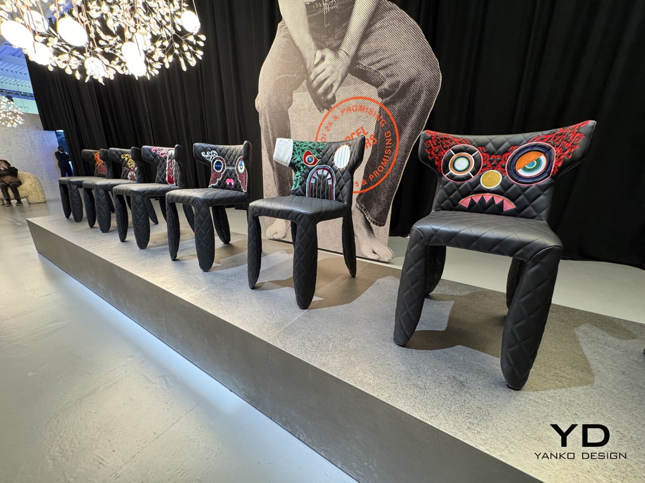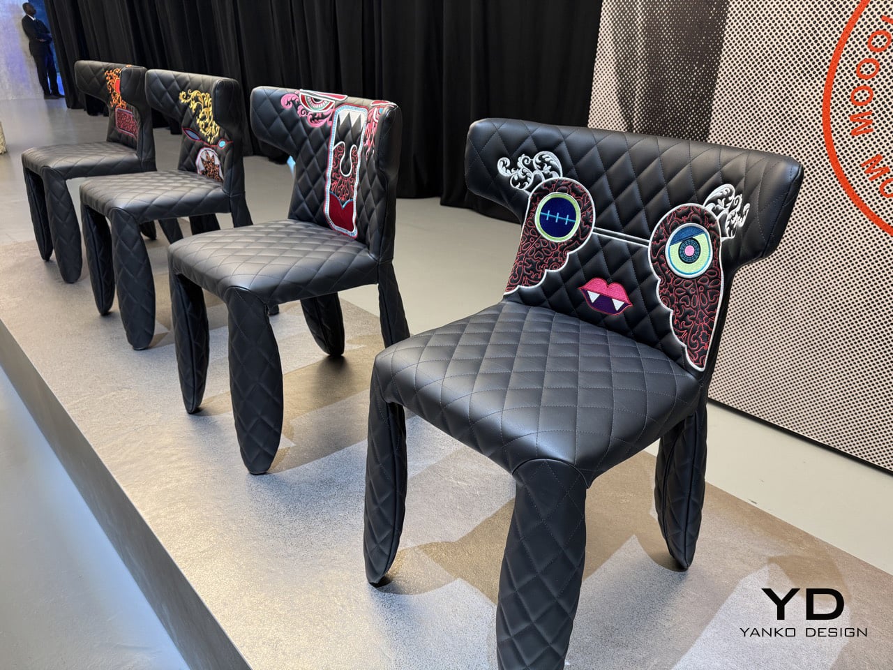 The collection was on display at Superstudio Events during Milan Design Week 2026, part of Moooi’s broader 25th anniversary showcase. If you’re in Milan during the design week, Superstudio is worth the trek. The exhibition space gave these Monster Chairs the gallery treatment they deserve, lined up against black curtains with dramatic lighting that made the embroidered details pop. It’s the kind of installation that reminds you why Milan remains the essential pilgrimage for anyone who takes design seriously.