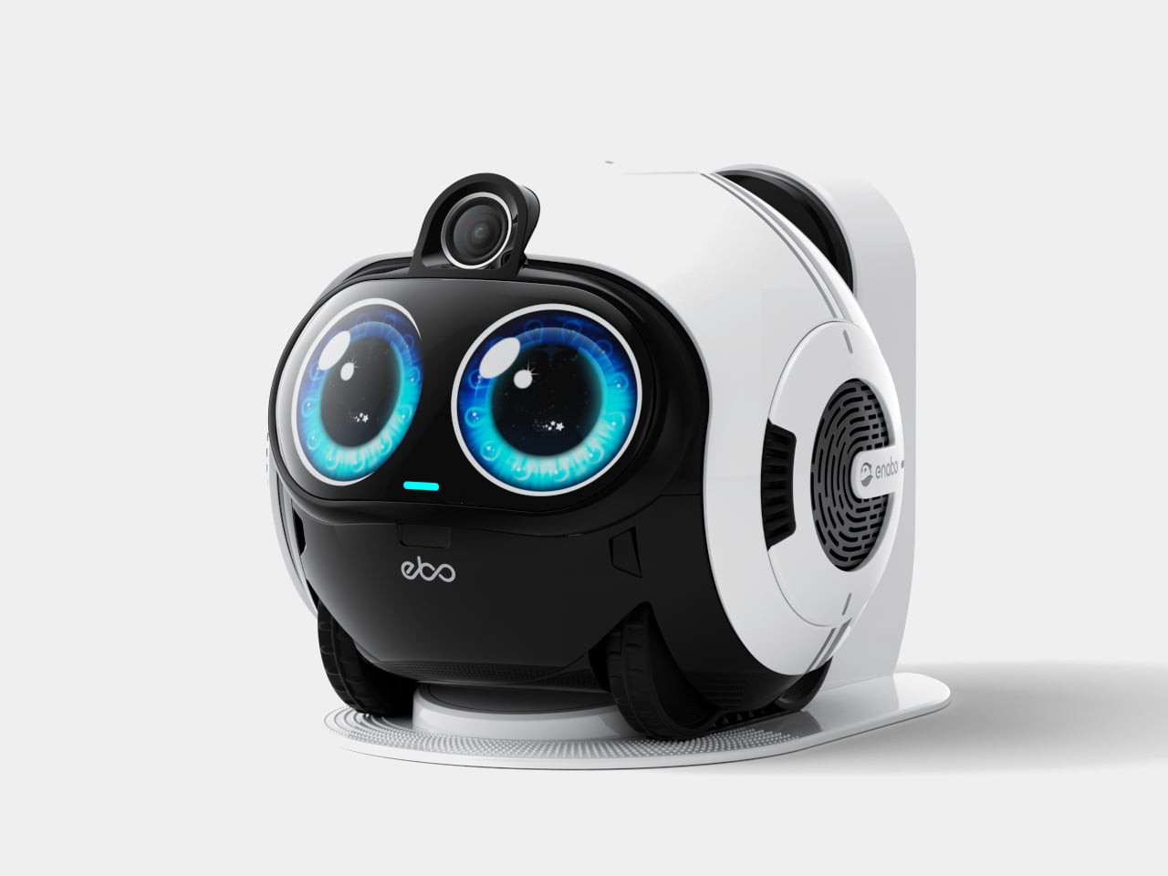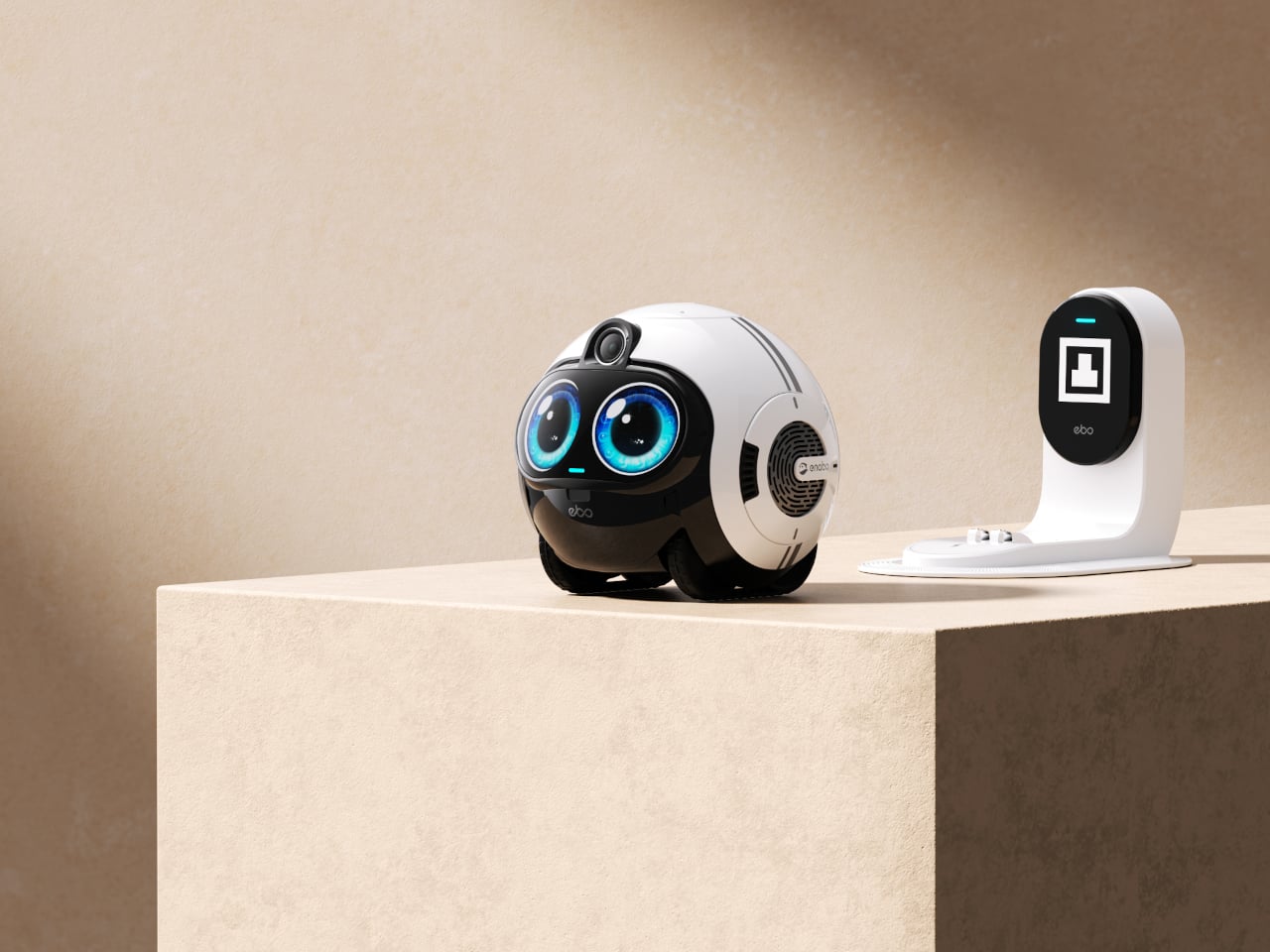 Enabot’s EBO Max FamilyBot takes a completely different approach. It’s a compact, round-bodied robot roughly the size of a football, with expressive oversized eyes and the ability to roll independently through every room of your home. Rather than sitting on a shelf waiting to be spoken to, the EBO Max goes looking for the people it’s come to know, without needing to be told.
