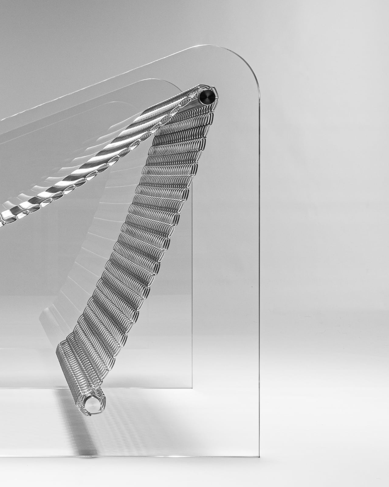 The design concept comes from mimicry. The shape of the armchair echoes and mirrors its own materiality, the glass structure and the mesh base informing each other as if they grew into their final form together. That kind of design intention, where the form and material feel genuinely inseparable, is rarer than it should be. A lot of furniture design today prioritizes the photograph over the experience, optimized for an Instagram carousel rather than a living room. The Metal Affaire feels like the opposite impulse. It’s meant to be looked at closely, touched, questioned.