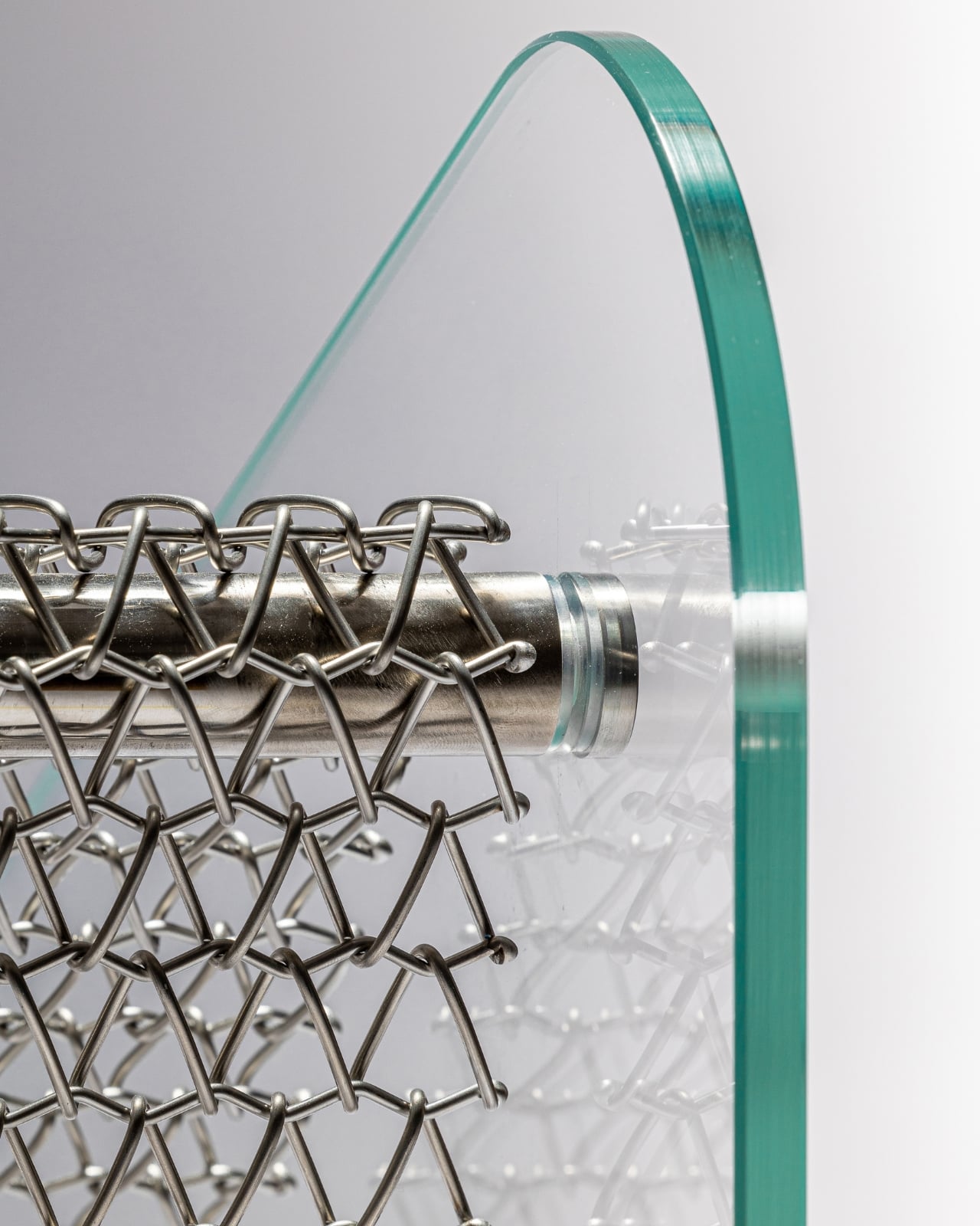 The name itself is a bit of a wink. “Metal Affaire” suggests something indulgent, a rendezvous between industrial materials and refined design sensibility. And Minimal Studio leans into that duality without apology. The metallic mesh doesn’t try to hide itself or disappear behind the glass. It asserts its presence, and the contrast between hard structure and transparent surface is the entire point. Industrial and elegant at once, which is a balance that is genuinely difficult to achieve without one quality undermining the other.