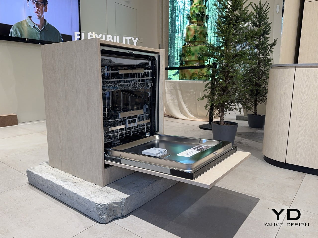 The mechanism raises the lower basket to the upper basket’s level for faster, easier loading and unloading, with reinforced hinges tested to lift a fully loaded lower basket to that same height. The 800 series behind this feature delivers the cleaning power to completely remove baked-on or dried food residues on as little as 8.4 litres of water. At a fair saturated with conceptual objects and material experiments, what Electrolux demonstrated was something considerably more personal: a change to a small, daily physical struggle that millions of people live with quietly. The brand built serious cleaning performance around that ergonomic premise rather than treating accessibility as a secondary concern. Running at 42 dBA, with a noise class rating of B, the machine is also one of the quieter options in its segment.