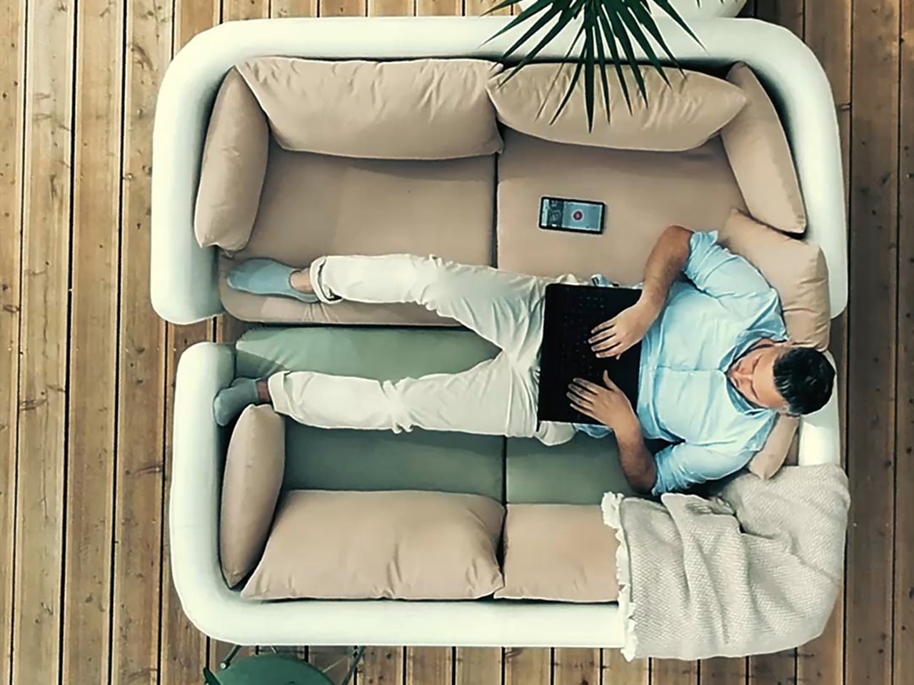 Of course, an innovative sofa would be pointless if it didn’t offer comfort, and thankfully, the M Sofa delivers. The seat and backrest are set at a natural resting angle, with smooth, rounded edges and no pressure points, giving you enough support for extended stretches. There’s a subtle firmness to the inflated structure that feels more like a well-tuned mattress than a balloon, and you can adjust it simply by changing the air pressure.