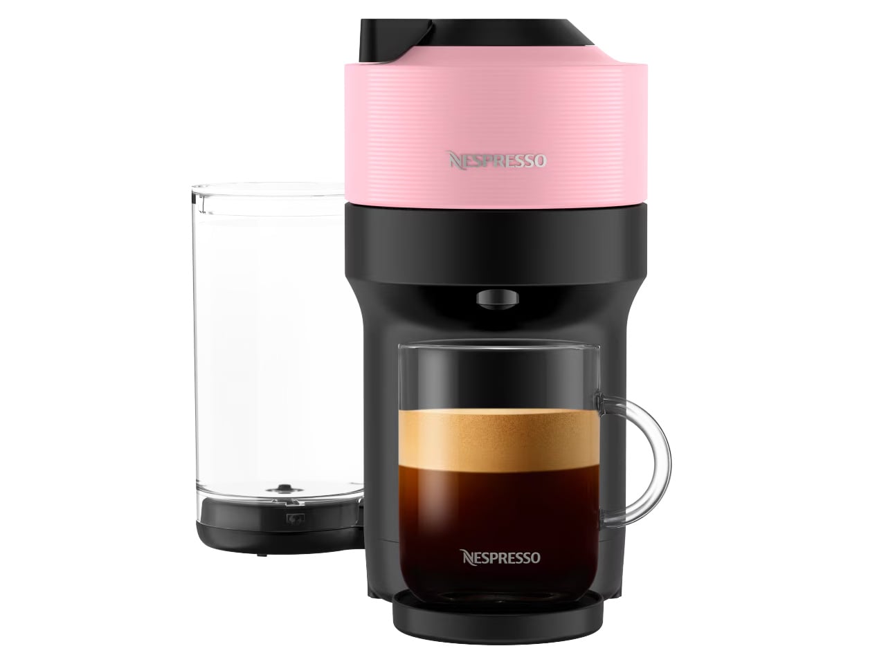 The Nespresso Vertuo Pop+ is the most color-forward machine in the Vertuo lineup and one of the most capable compact brewers at its size. It brews five sizes of coffee, hot or iced, using centrifusion technology that reads the barcode on each capsule and automatically sets temperature, volume, and spin speed. No adjustments. No guesswork. No machine is crowding the counter between uses. For a mom who starts every morning the same way, this turns that ritual into something she can feel genuinely good about the moment she walks into the kitchen.