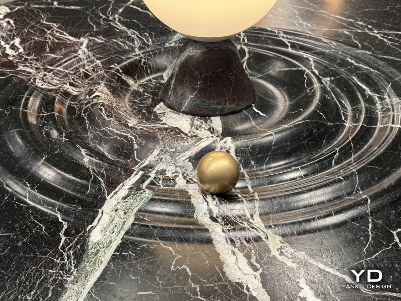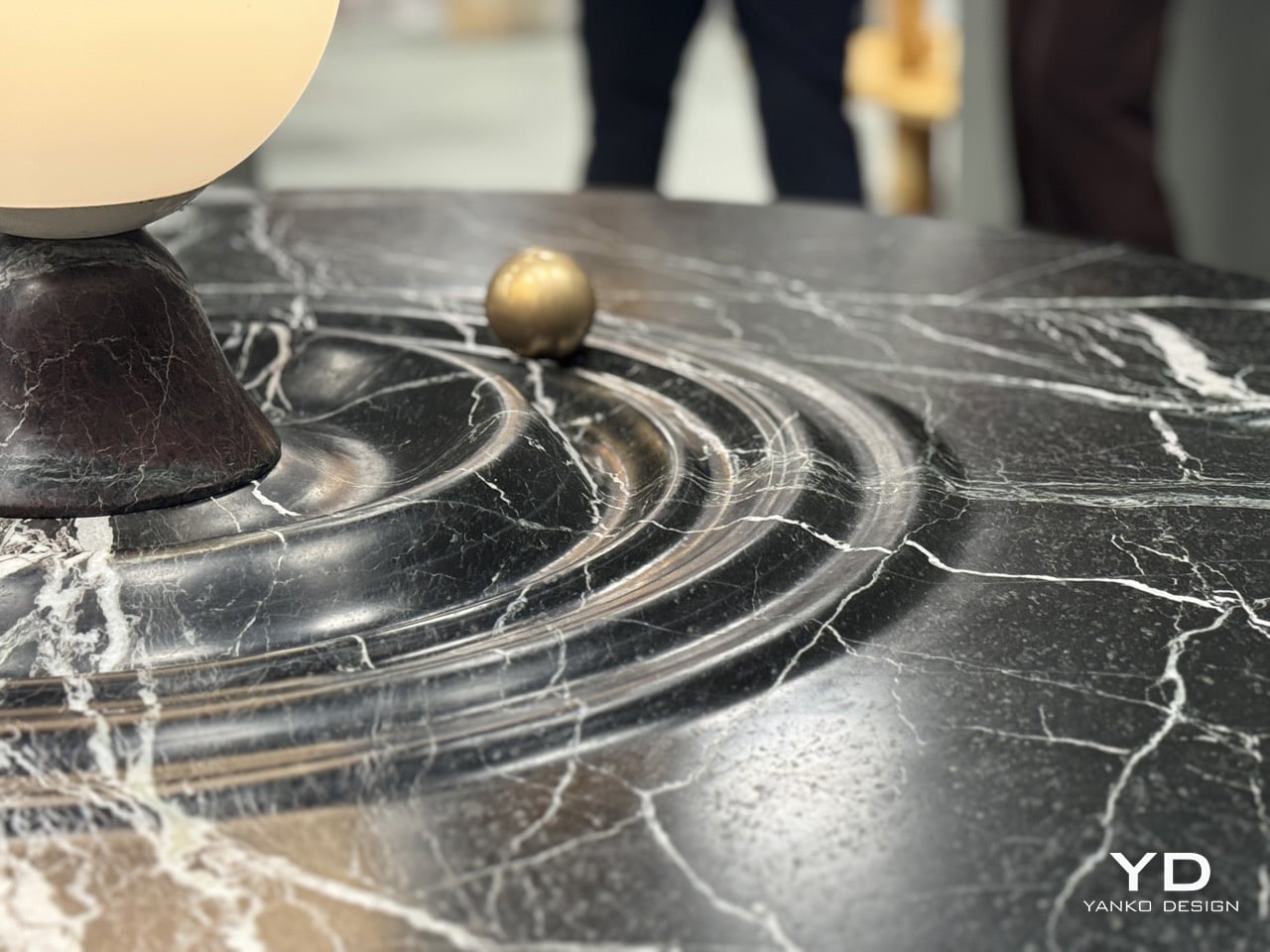 Furniture should probably stay still. That’s the basic contract between you and the table: it holds your dinner plates, you don’t worry about physics. Alessio Scalabrini decided that contract was negotiable. The Animo table, produced by Italian marble workshop Serafini, features a brass sphere that rotates around a central lamp fixture, tracing concentric ripples carved into the marble surface like a tiny planet orbiting its sun. The table functions perfectly well as a static dining surface, but it also invites you to set something in motion every time you walk past it, turning what could’ve been another high-end marble slab into an interactive kinetic object that happens to hold glassware.