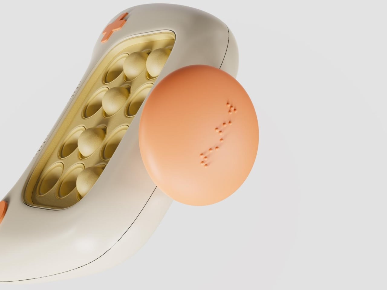 The warm cream-and-peach colorway, also available in a soft blue variant, lands somewhere between a retro Game Boy and a modern sensory toy. It’s disarming in the best way. Inclusive design doesn’t always need to announce itself with clinical aesthetics, and the Bubble Braille fully embraces that idea. It looks like something a kid would want to own, not something they were assigned.