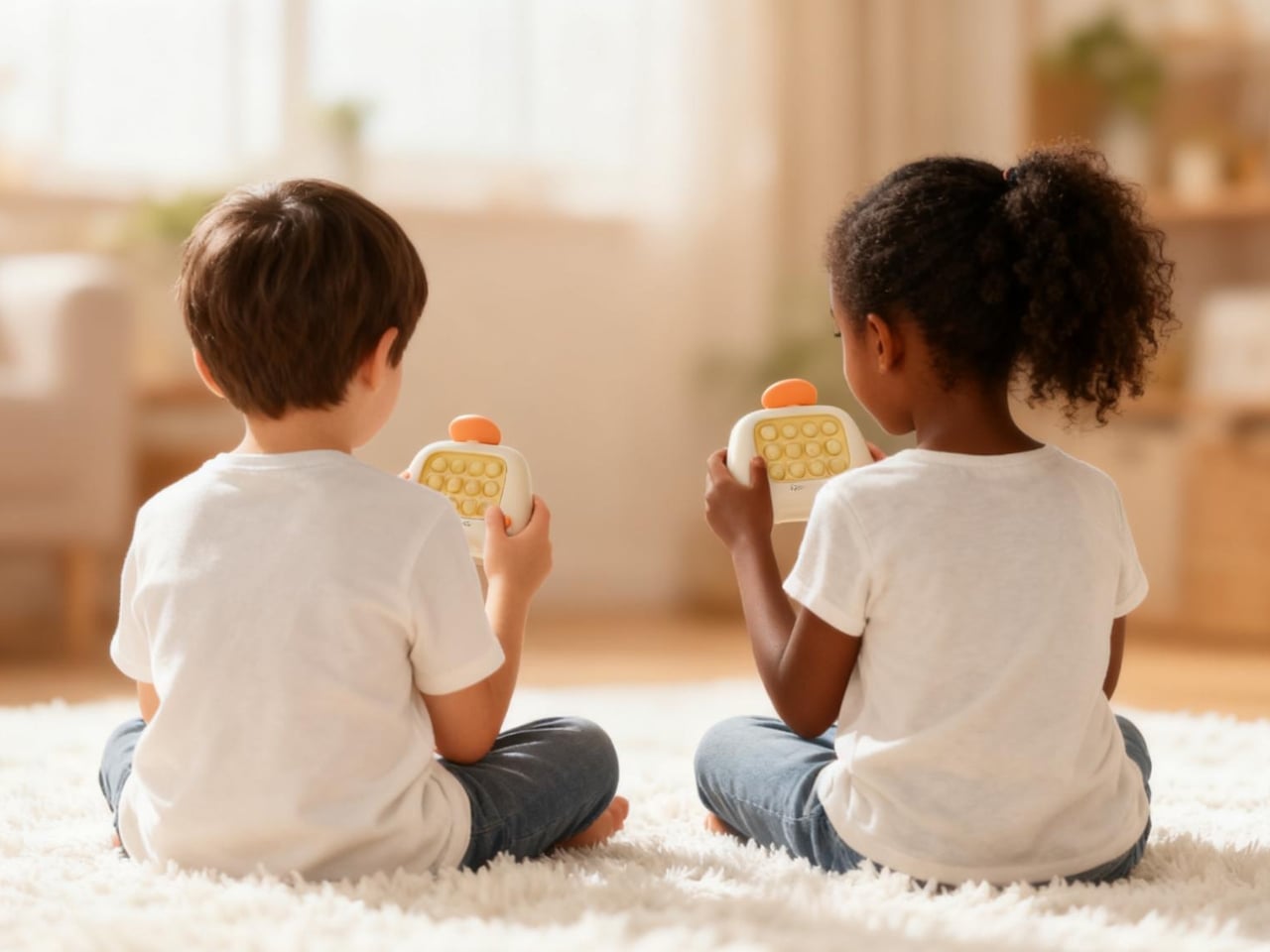 The device is shaped like a compact game controller, with a grid of raised silicone buttons at its center and a soft, egg-shaped button at the top. Those bubble-like buttons aren’t just for squishing, though the satisfying tactility certainly doesn’t hurt. Each one is designed to accurately simulate the raised and recessed dot patterns of Braille, so children are building finger memory and character recognition through play rather than through rote drilling. The silicone material feels like an intentional and smart choice: soft enough to be non-threatening for little hands, yet precise enough to replicate the tactile nuances of actual Braille text.