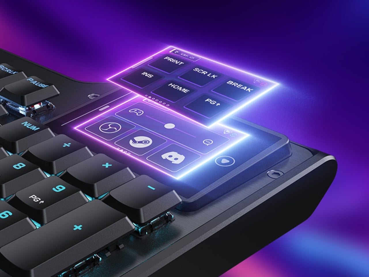 The KB7 is the flagship, a tenkeyless board with a 4.3-inch Command Touch Display built into it. Think of it as a Stream Deck fused onto your keyboard, letting you swap profiles, trigger macros, manage audio, or push OBS scene changes with a tap. For streamers bouncing between a game and broadcast software, it removes a good chunk of extra hardware and window-switching.