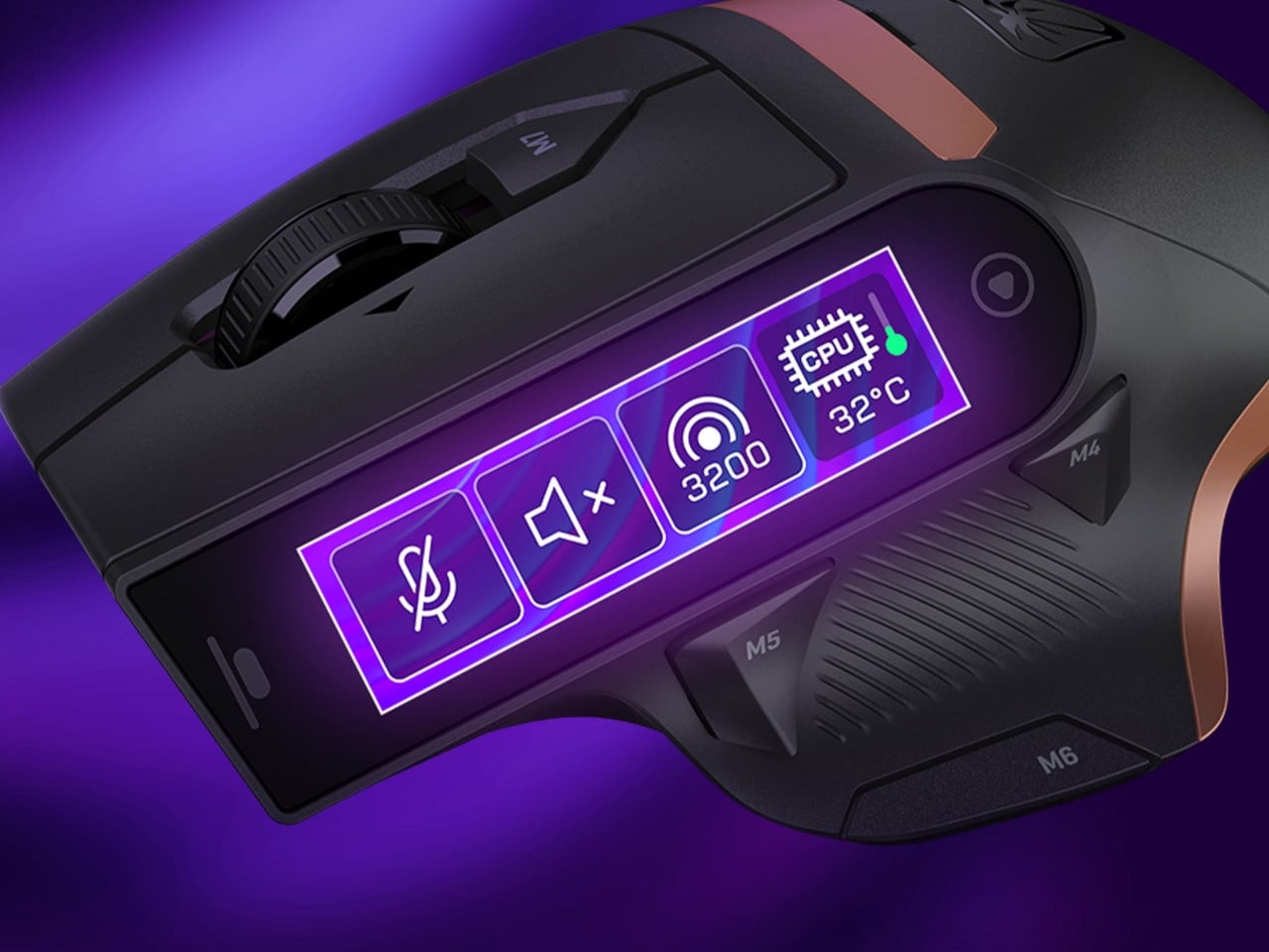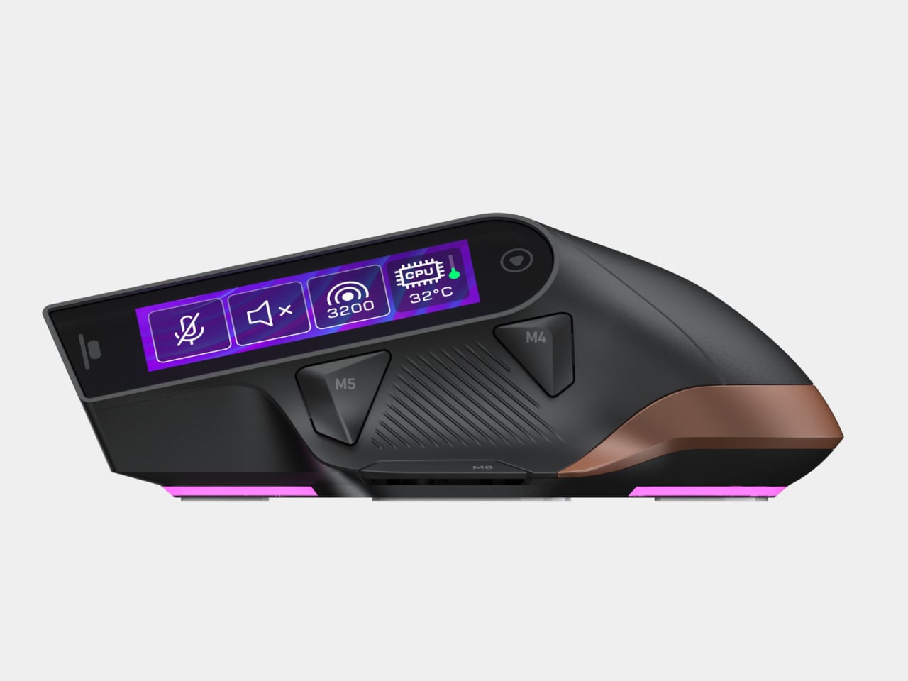 Then there’s the MC7, the device that makes you look twice. It’s a wireless gaming mouse with its own 2.25-inch touchscreen, and it works much the same as the keyboard displays. On the fly, you can adjust DPI, switch between five onboard profiles, mute your mic, or trigger OBS scene changes without breaking your grip or pulling your attention away from whatever’s on your screen.