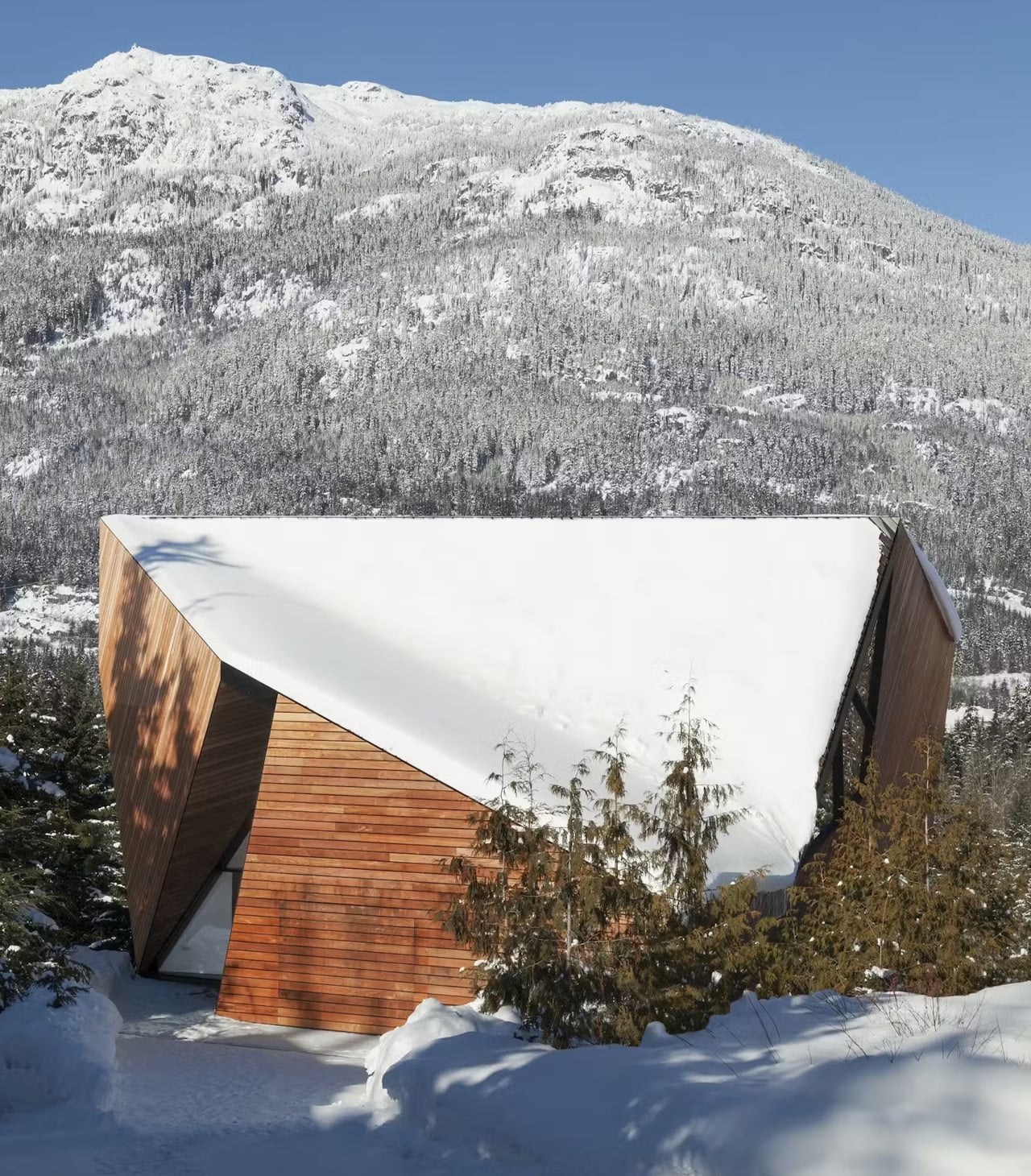 There are mountain homes, and then there is the Hadaway House. Perched on a northwest-facing slope in Whistler’s exclusive Sunridge neighbourhood, this 4,497-square-foot residence by Patkau Architects reads less like a chalet and more like a crystalline object that fell from the mountain itself — all sharp planes, acute angles, and glass that pulls the valley in from every direction.