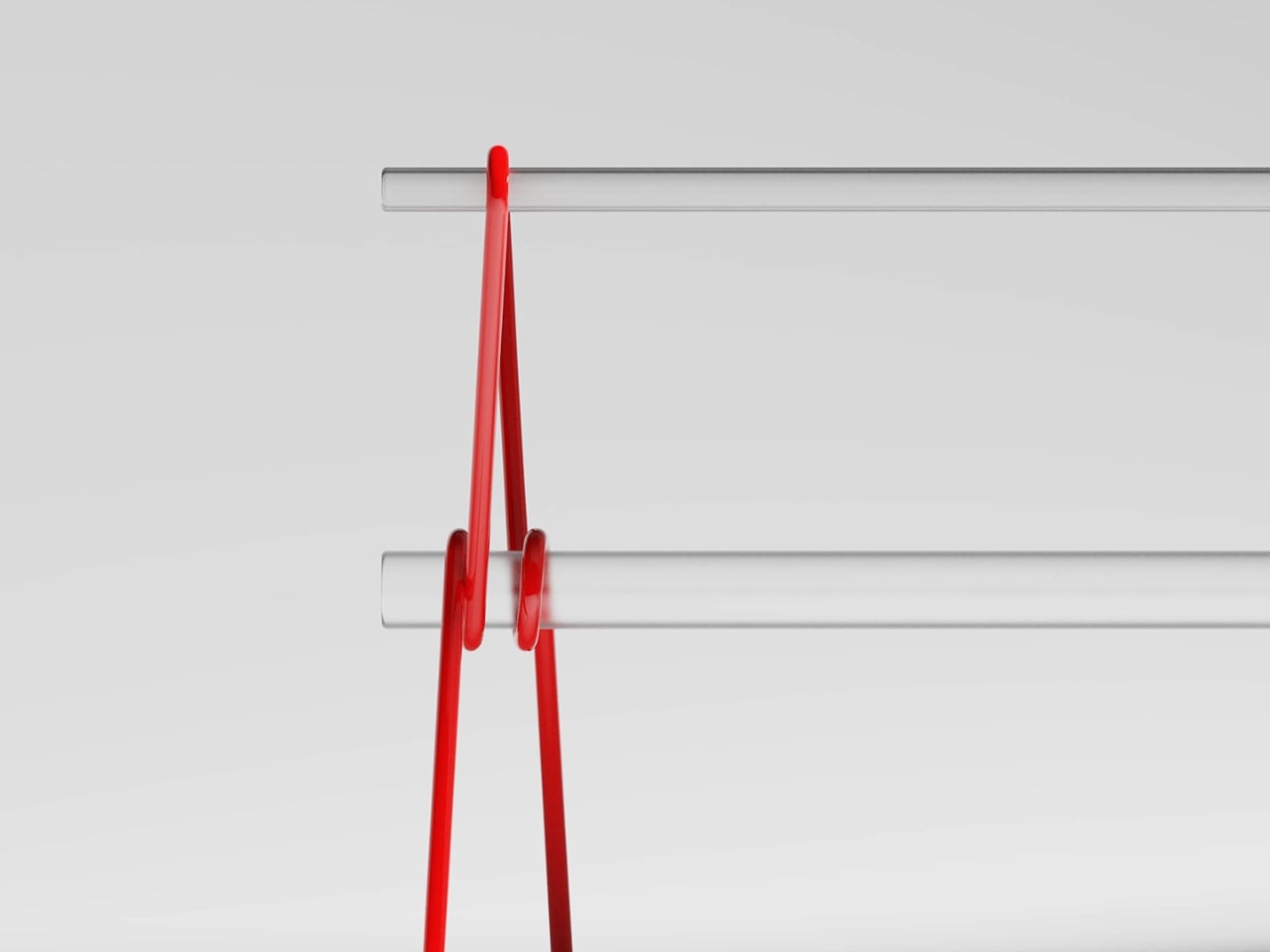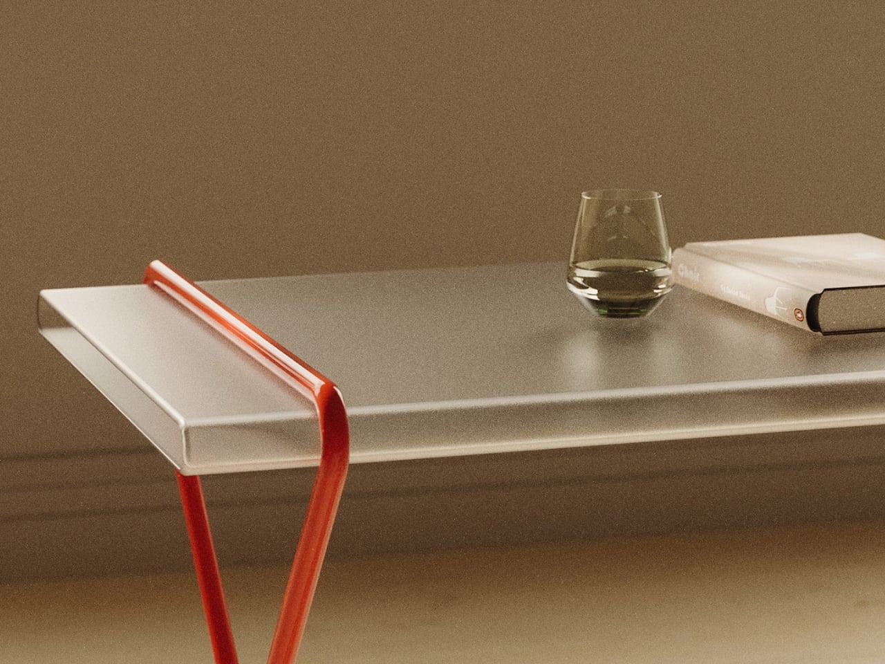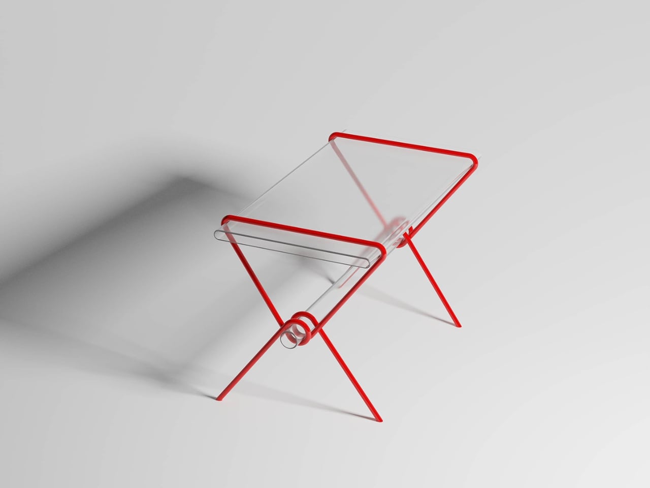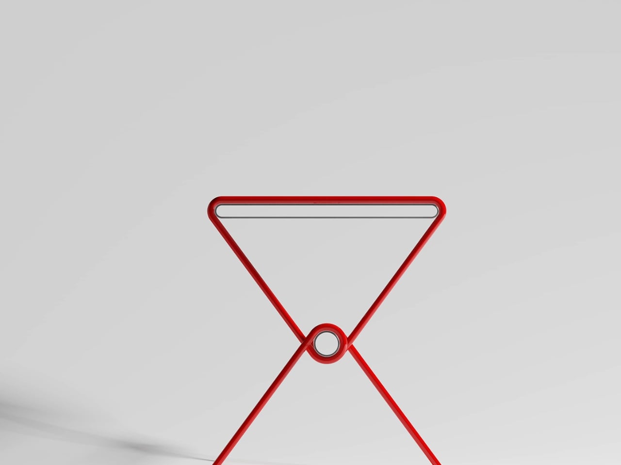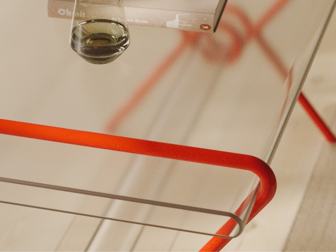 The construction is striking at first glance. A continuous red metal line bends, loops, and crosses itself into a structure that holds a transparent tabletop with almost suspicious ease. It looks like a sketch brought into three dimensions, or a gesture caught mid-motion. The structure doesn’t feel assembled so much as drawn, and that distinction matters more than it might seem. Assembled things feel permanent, fixed, committed to their identity. Something drawn feels like it could become something else.