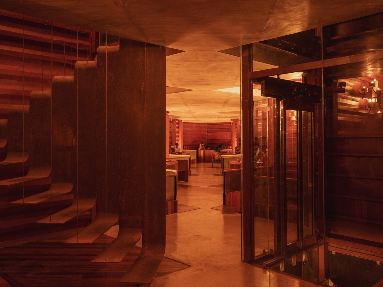 The result is a building that looks like it grew out of the ground. From the outside, Petti reads as a textured, warm-toned structure with a zigzagging profile, the kind of silhouette that makes you stop and puzzle over whether it’s old or new, industrial or handcrafted. The answer is that it’s both, and that tension is exactly the point.