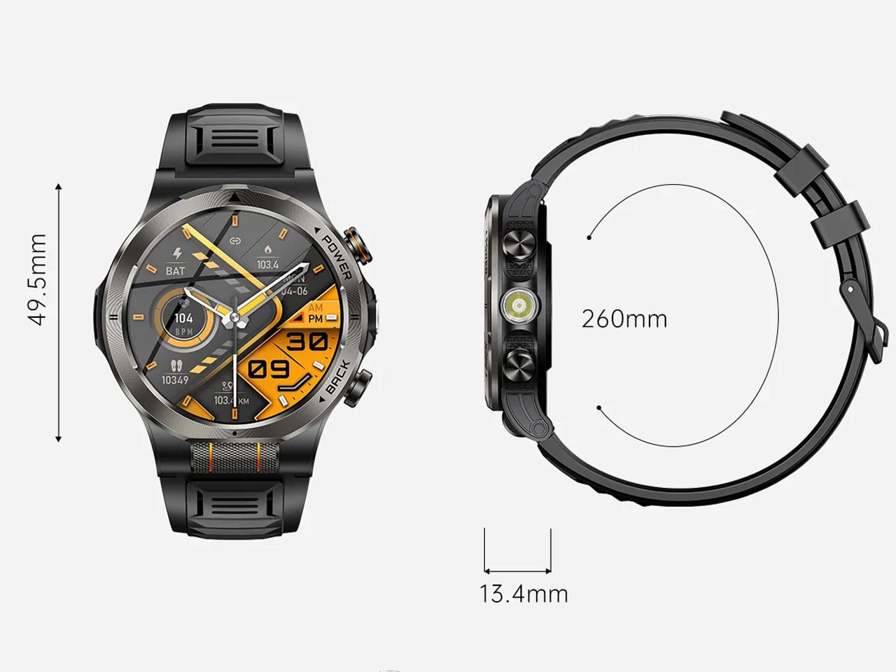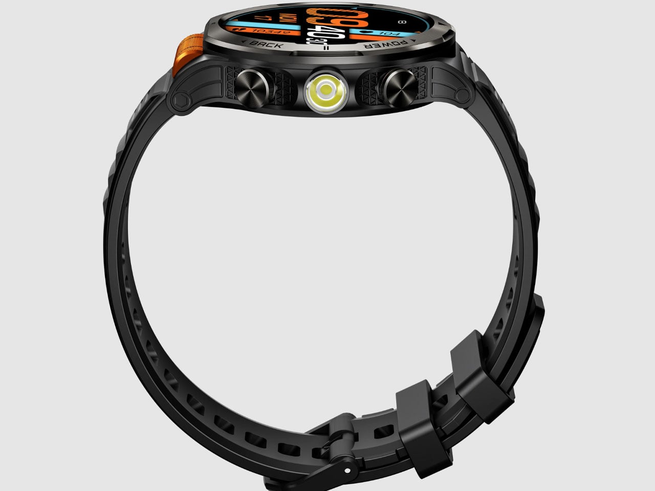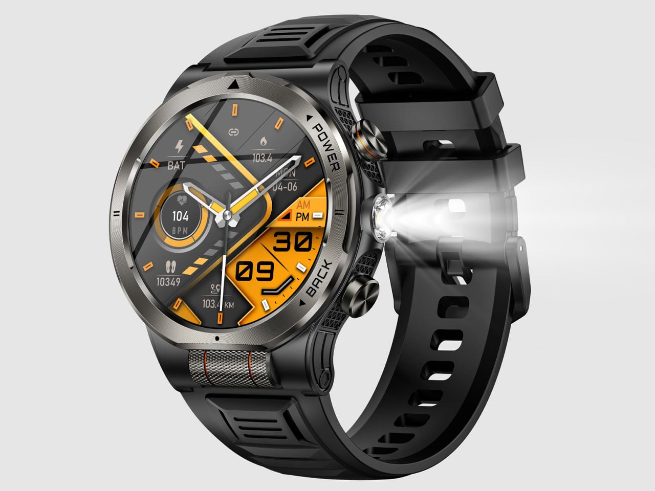 Apart from the intuitive scroll wheel control, the watch has a built-in flashlight that is much more than the bright screen mode that normal smartwatches use for the flashlight function. SpinX goes a step further by adding a specialized optical lens and a deep reflector for better results. The focused beam from this flashlight is very useful in inclement weather conditions as it prevents light scattering. This comes very handy on foggy nights and rainy seasons. The flashlight comes in three modes: High, Beam, Strobe, and SOS for a more granular control over the usage scenarios.