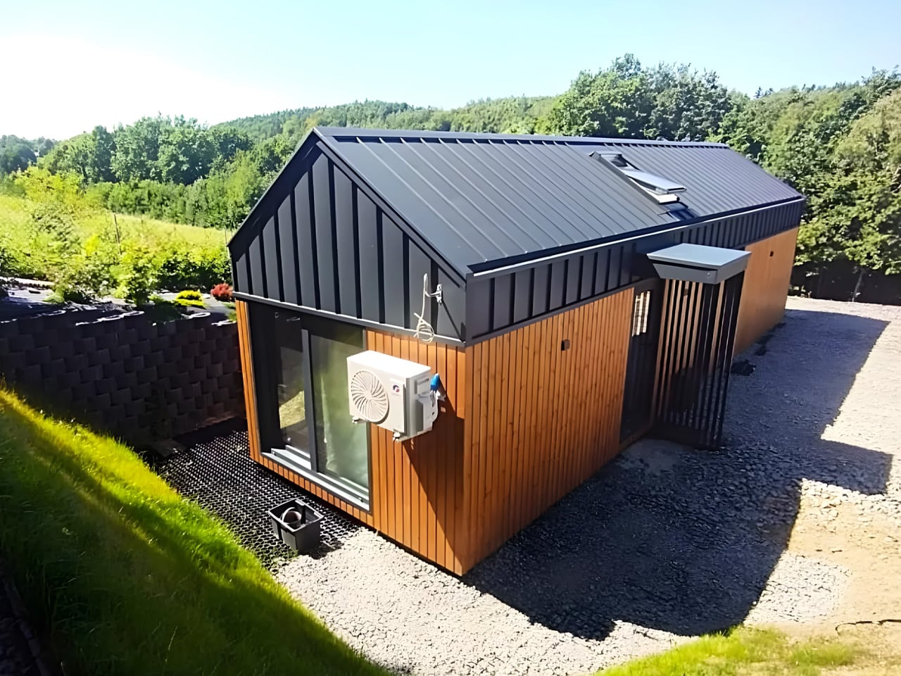 The exterior reads clean and considered. Engineered wood and standing seam aluminum make up the cladding, a material pairing that signals permanence without heaviness. It shares visual DNA with earlier Craft House models like the Katrin, though the Lukas carries a quieter confidence that comes from not needing to justify its footprint.