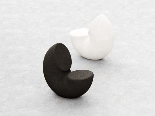 Most chairs are clearly assembled objects, with legs, a seat, and a backrest, all stacked and joined together. Sculptural lounge pieces sometimes flip that script…