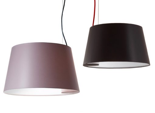 Unlike most lamps, Floo is suspended from one side. It remains level because the center of gravity has shifted to the shade’s unique conical shape….