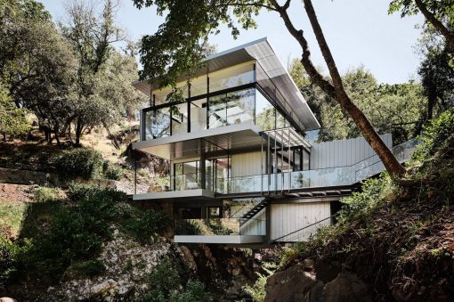 Remodeled by Fougeron Architects, this holiday home is suspended between two hills in California, bridges a creek, and has a waterfall in the backyard! It…