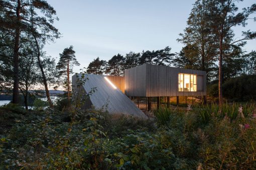 Nestled on the south edge of the Czech village of Rybí, is a V-shaped house that consists of two elongated volumes that intersect one another,…