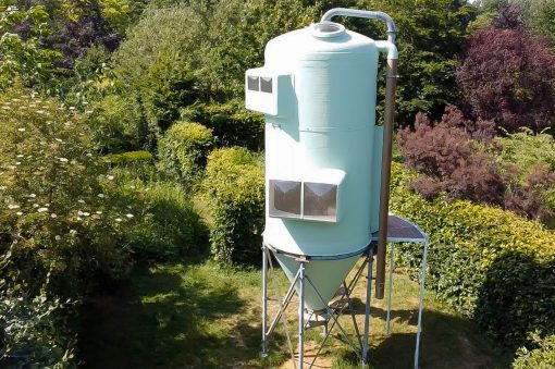 This Container Cabin made from stacked containers is nestled in a former paddy field