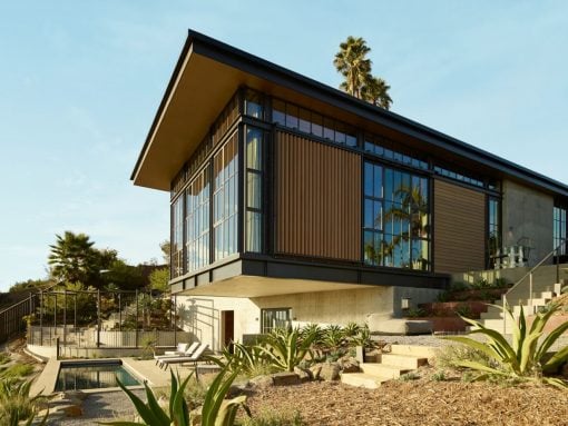 Perched atop a challenging 45-percent slope in the Hollywood Hills, this striking residence by Kristen Becker of Mutuus Studio reimagines what luxury living can look…