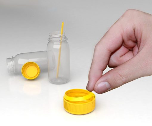 Now here is a curious idea, what we have is the plastic screw-on cap of a bottle and in that cap is the sealing strip…