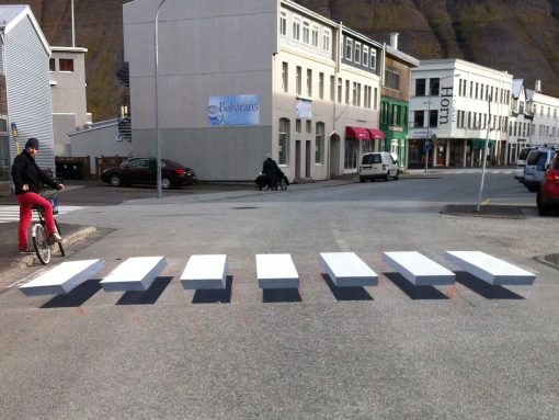 In Ísafjörður, Iceland, a small fishing town framed by towering fjords, a simple crosswalk has turned into an optical illusion that stops more than just…