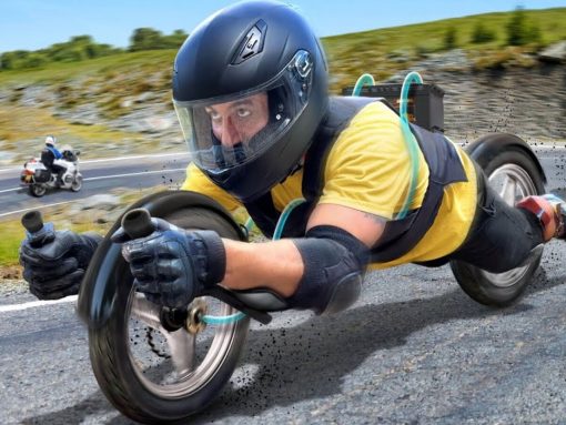 Inventor and content creator Jake Carlini has turned a damaged electric bike into a wearable motorcycle suit, one that lets him ride while lying nearly…