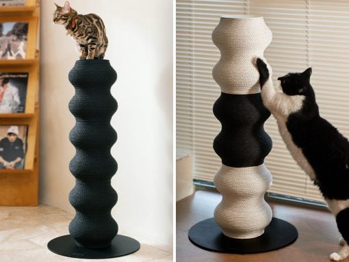 This Wavy Sculptural Cat Post Turns Feline Play Into Living Room Art