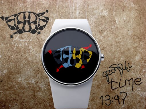 Inspired by the growing street art craze, this clever watch design displays time in an eye-catching, graffiti-tag style. All 4 digits for hours and minutes…