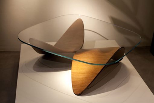 Sandro Lopez’s coffee table design combines curved, mirrored wood with free form glass to create an ethereal aesthetic without sacrificing practicality. Its a modern marriage…