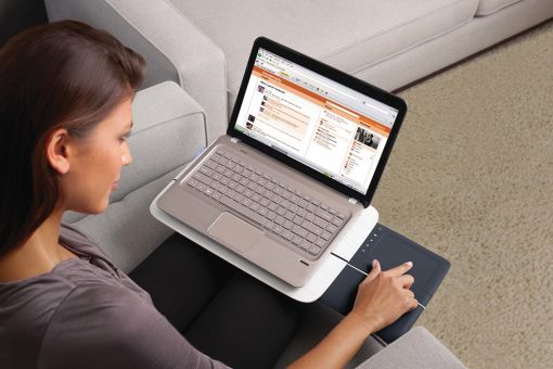 This laptop uses a patented hinge to transform into an ergonomic workstation anywhere!