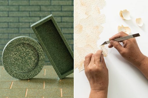 CArrelé is a collection of high-performance bioceramic tiles made from a mixture of eggshell fragments and binding agents. When considering waste, eggshell usually isn’t the…