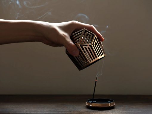 Designed using motifs taken from patterns found in zen gardens, Kenji Abe’s ‘Cage’ holds a single incense cone within its hollow interior, scattering its dense,…