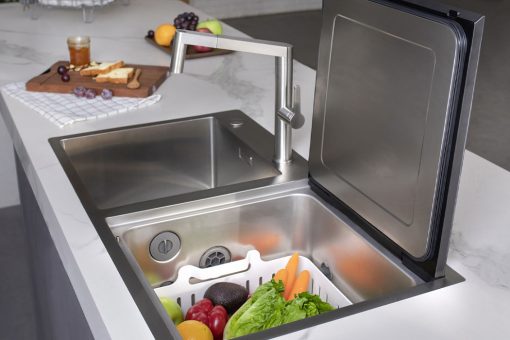 Moray is a statement kitchen sink built on a scheme of chamfers, angled surfaces, and curved edges designed for one-handed users like amputees, parents, and…